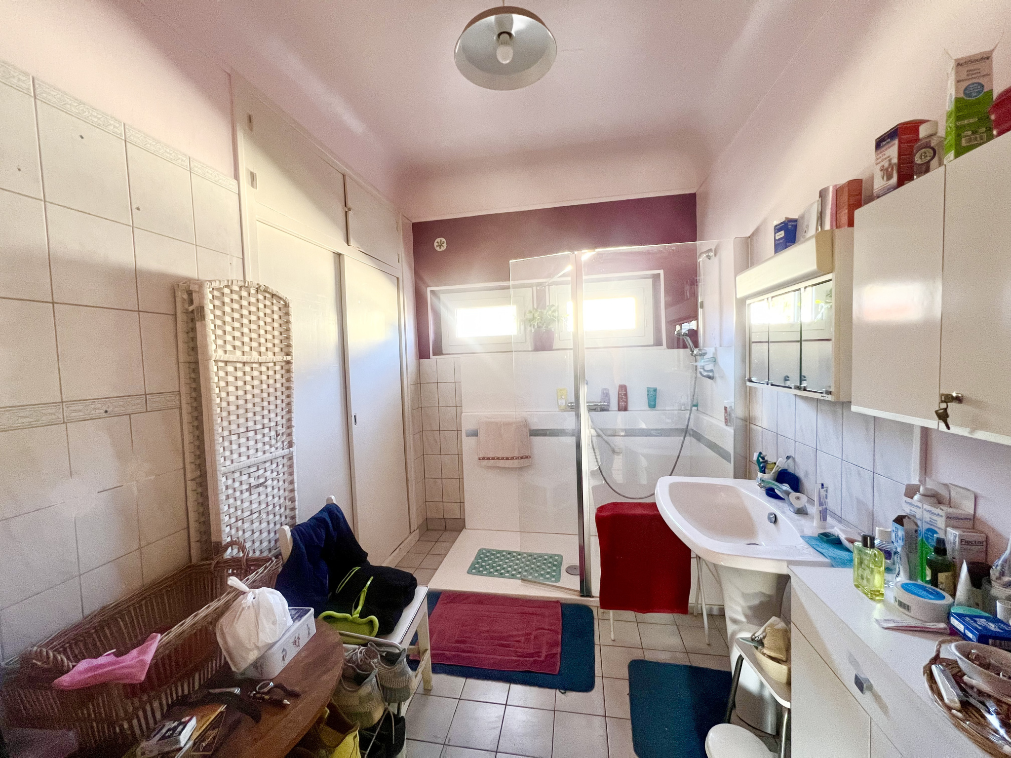 Édifiée sur sous-sol total (en rez-de-jardin), elle offre une fonctionnalité de plain-pied et se compose comme suit : entrée, salon / salle à manger de 33m2 environ (lumière traversante) avec accès à une terrasse, cuisine séparée et aménagée accédant à la terrasse également, une chambre, une salle d'eau avec un placard et des WC séparés.