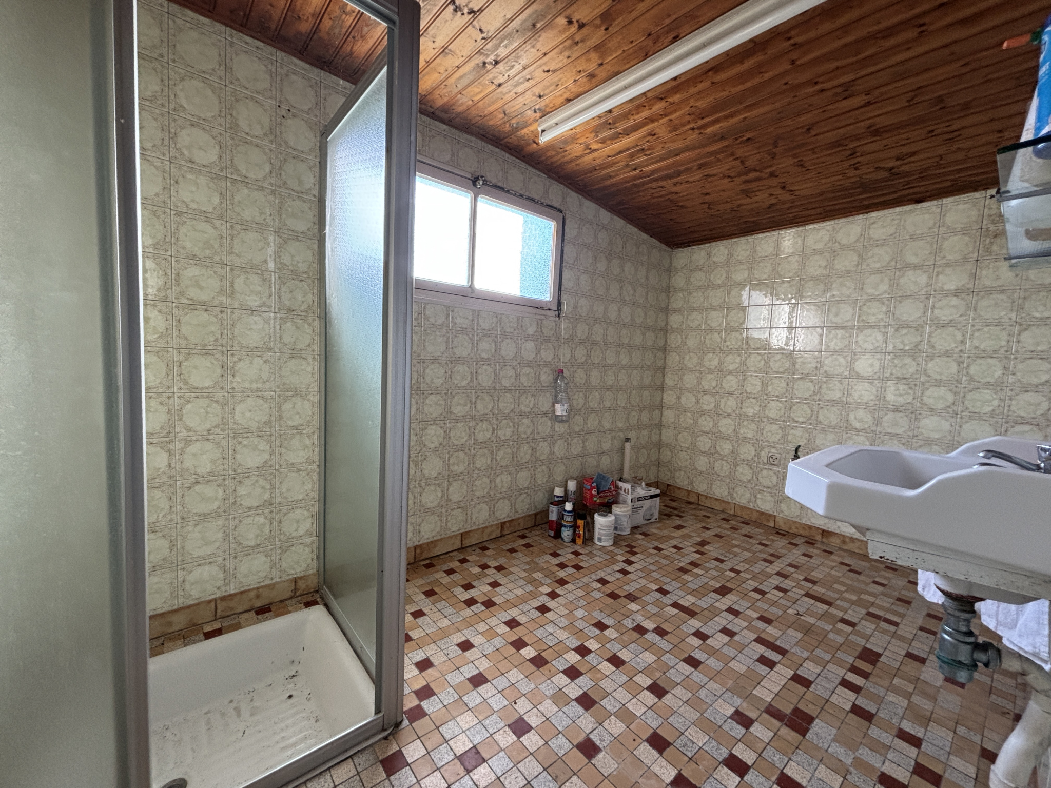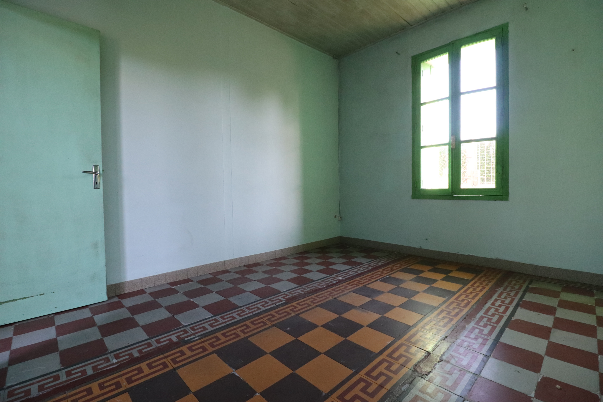 Cette maison non mitoyenne comprend actuellement: une entrée, une pièce de vie avec cheminée, deux chambres dont l'une avec une cheminée, une pièce avec accès direct vers l'extérieur pouvant servir de bureau, une salle d'eau, un WC.