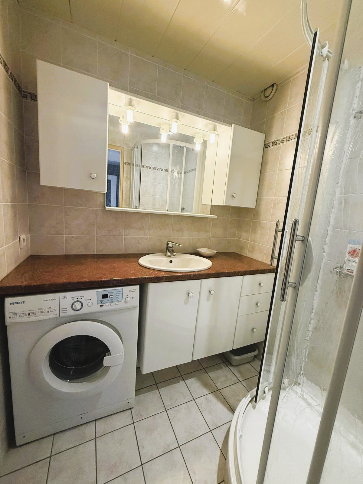 Situé au 5eme étage d'une résidence sécurisée, Appartement de type 2 comprenant entrée, dégagement alcove, 1 chambre, WC séparé, salle d'eau cuisine équipé ouverte sur le salon.