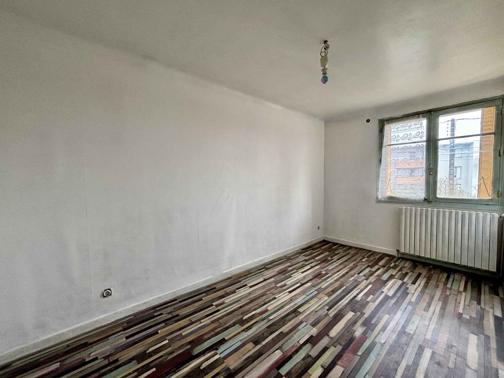 Éligible au dispositif Denormandie, elle comprend un salon/séjour avec cheminée, une cuisine aménagée, une salle d'eau, des WC, deux chambres et un bureau. Au sous-sol : une troisième chambre et un garage d'environ 50m2.