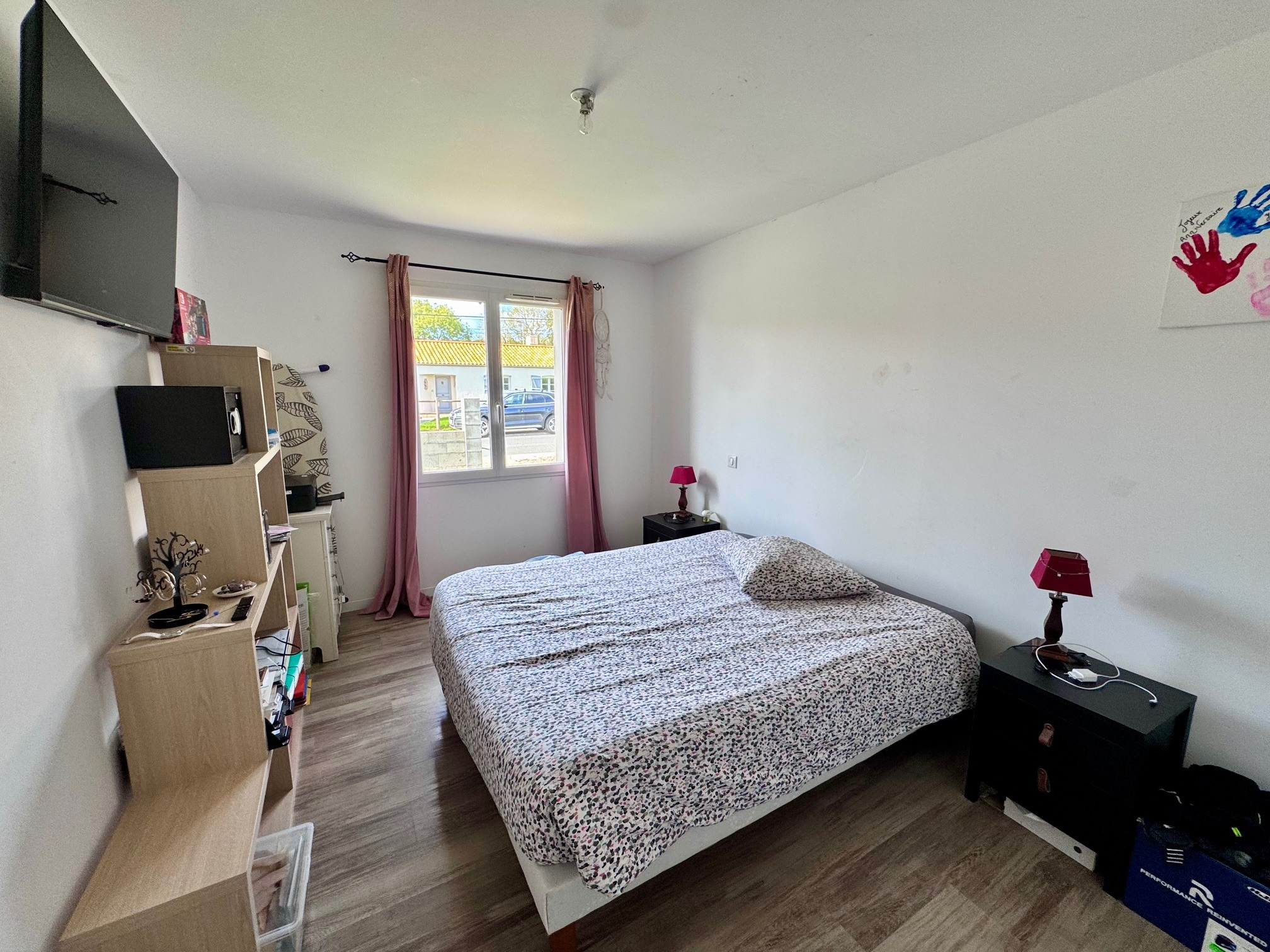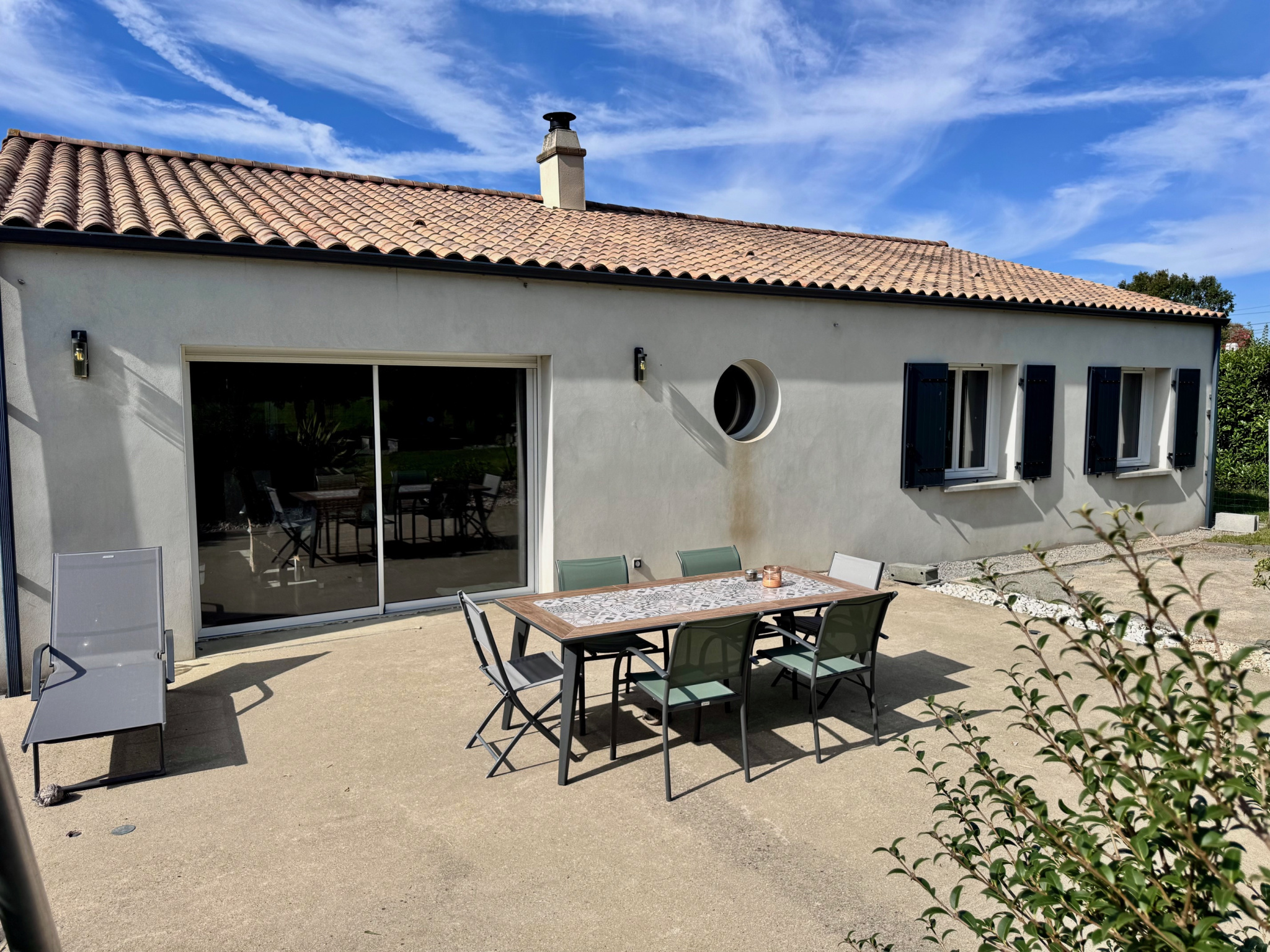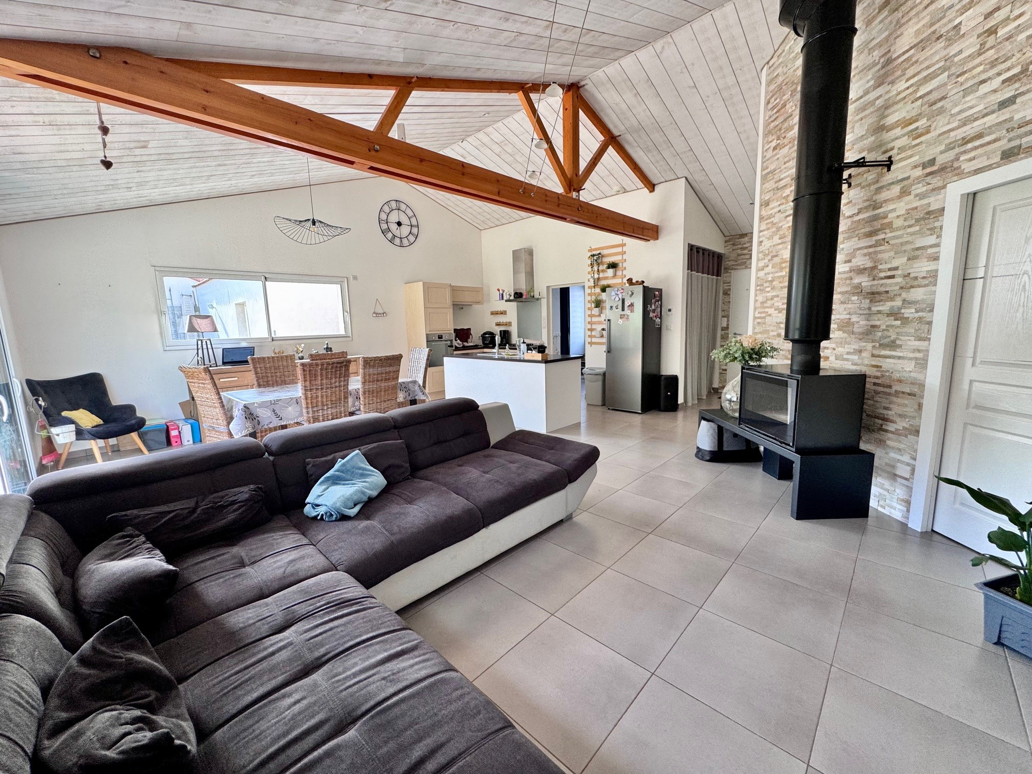 Située proche du centre bourg, cette maison de plain-pied de 2013 comprend : un hall d'entrée avec placard, une buanderie, une cuisine aménagée et équipée (une hotte, plaque de cuisson gaz, un lave-vaisselle, un four), un salon-salle à manger de 46 m2 environ avec un poêle à bois et donnant sur une grande terrasse.