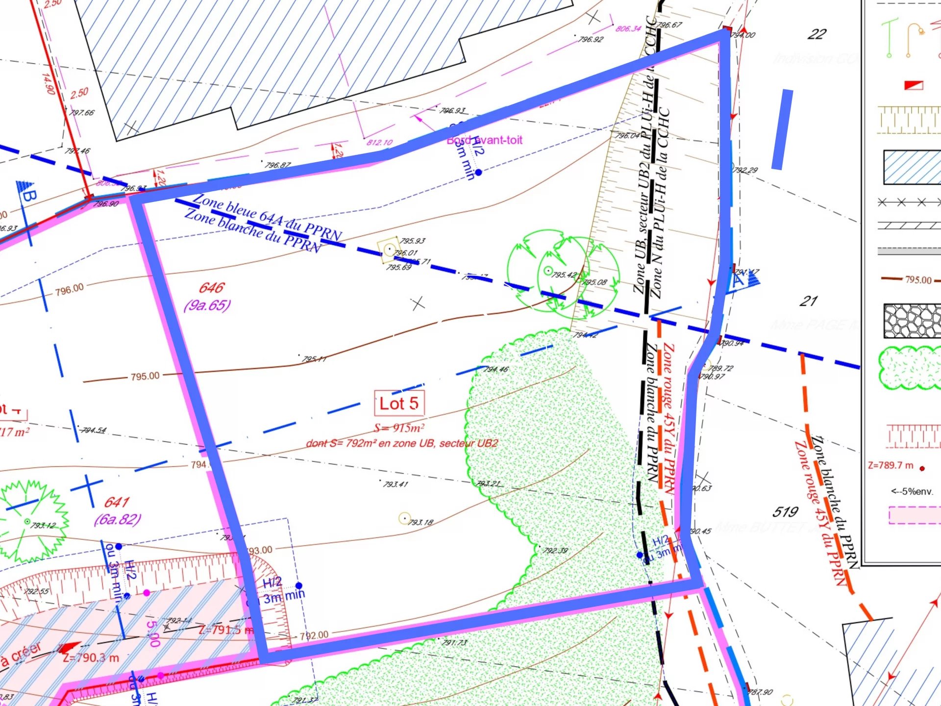 Règlementation urbanistique (zone UB – 792 m² constructibles) incluant les prescriptions suivantes :