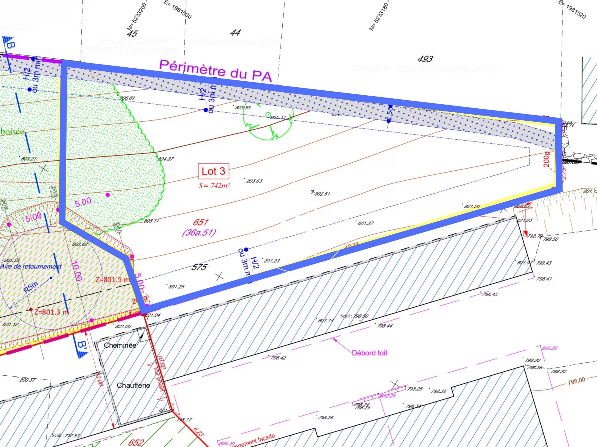 Règlementation d'urbanisme (zone UB – 742 m² constructibles) incluant les prescriptions suivantes :