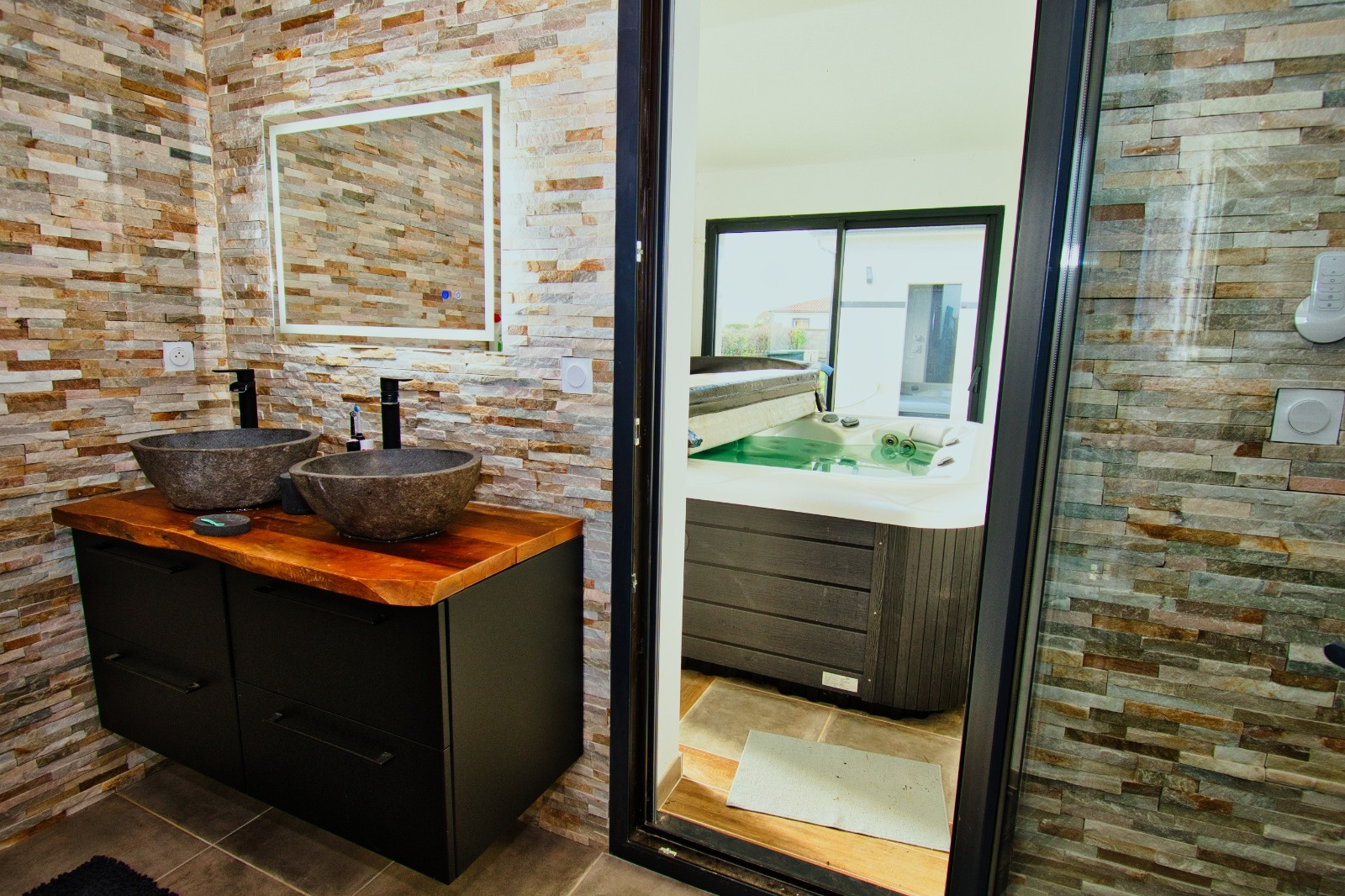 Un espace privatif , vous est réservé pour profiter d'un moment détente dans un bain bouillonnant du jacuzzi qui est inclus dans la vente.
