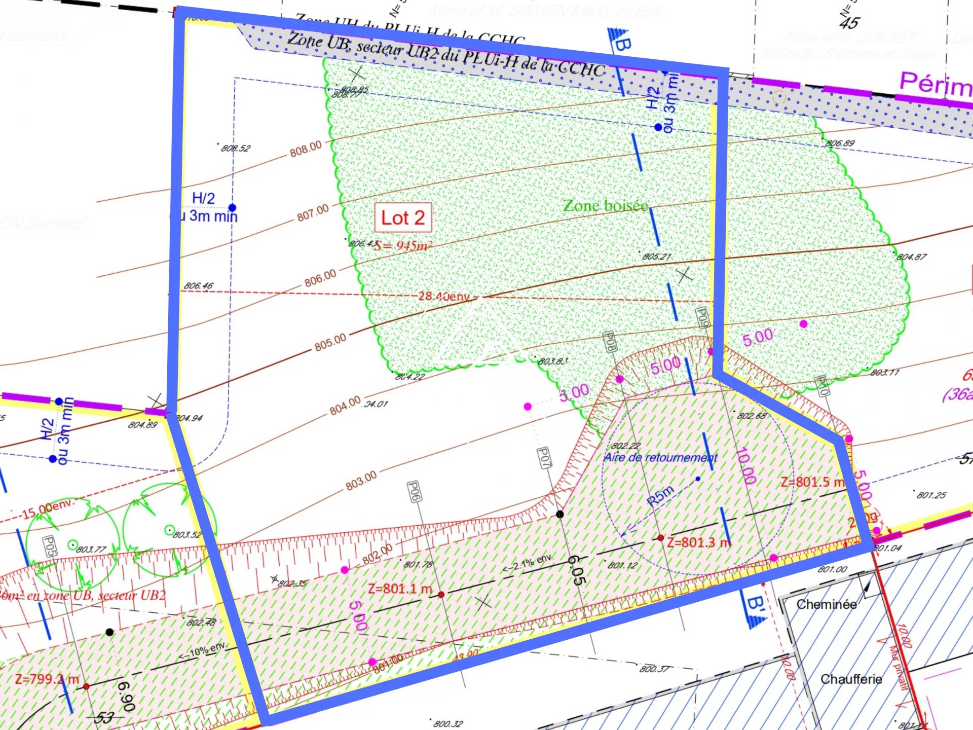 Règlementation d'urbanisme (zone UB – 945 m² constructibles) incluant les prescriptions suivantes :