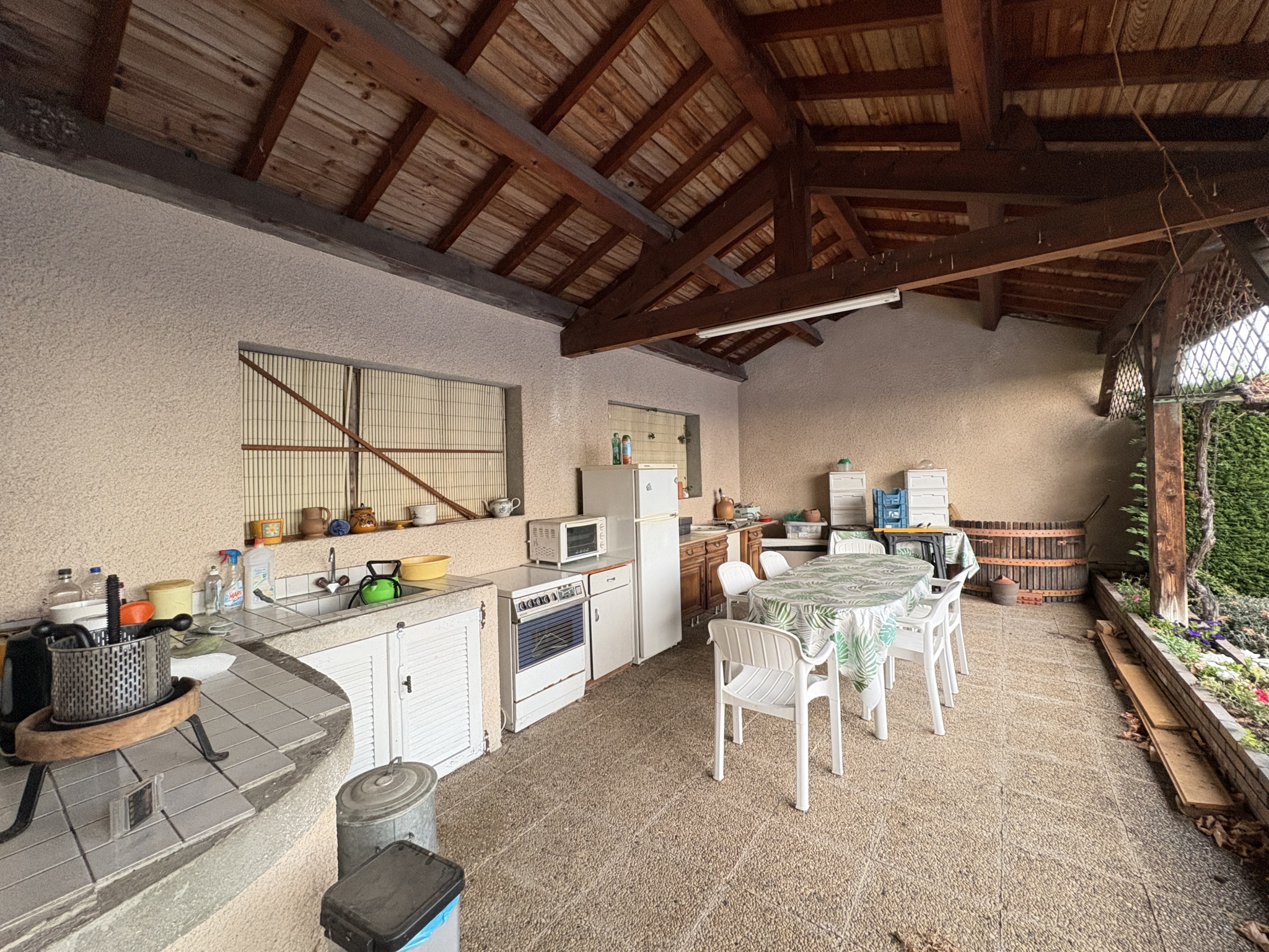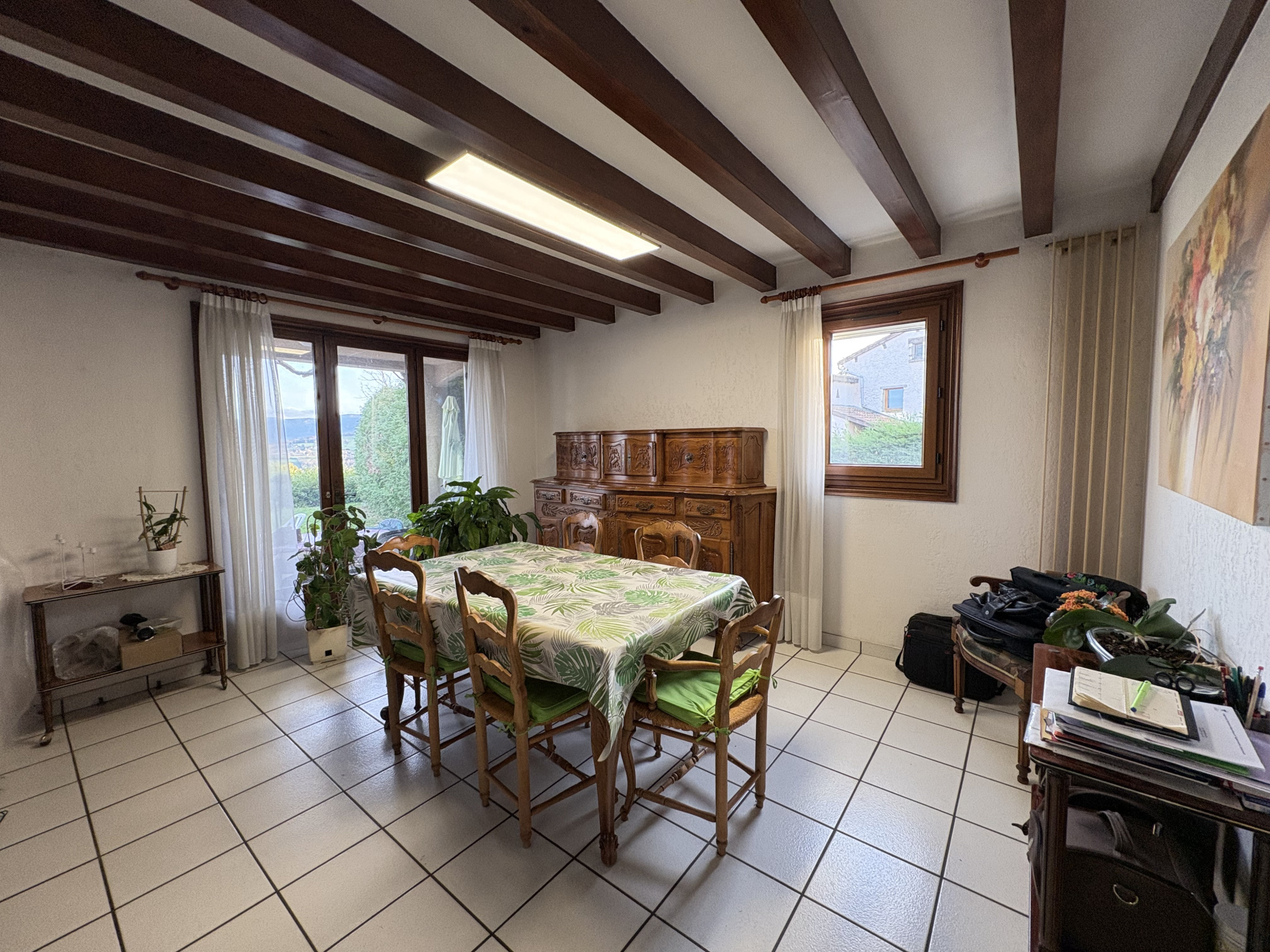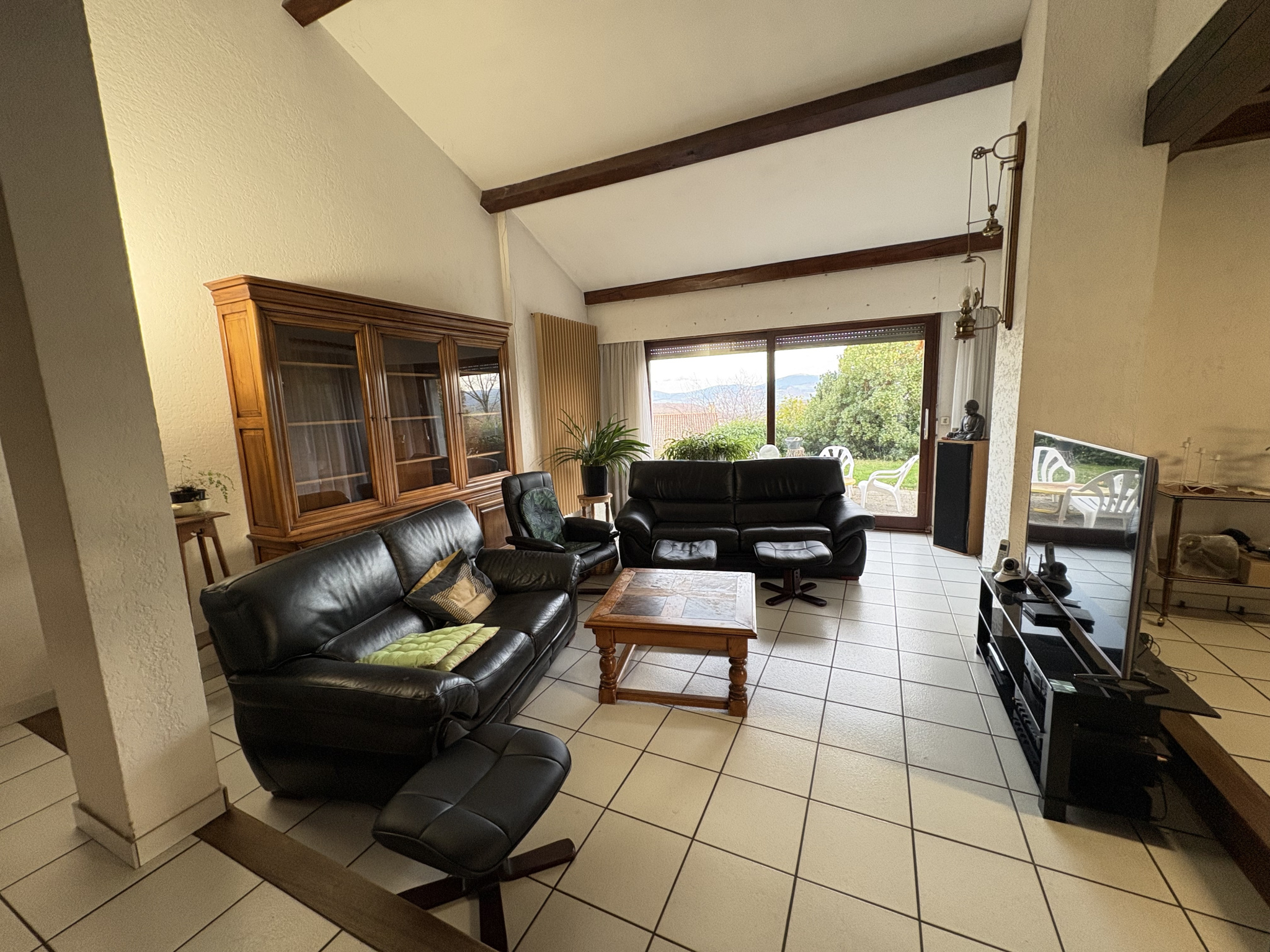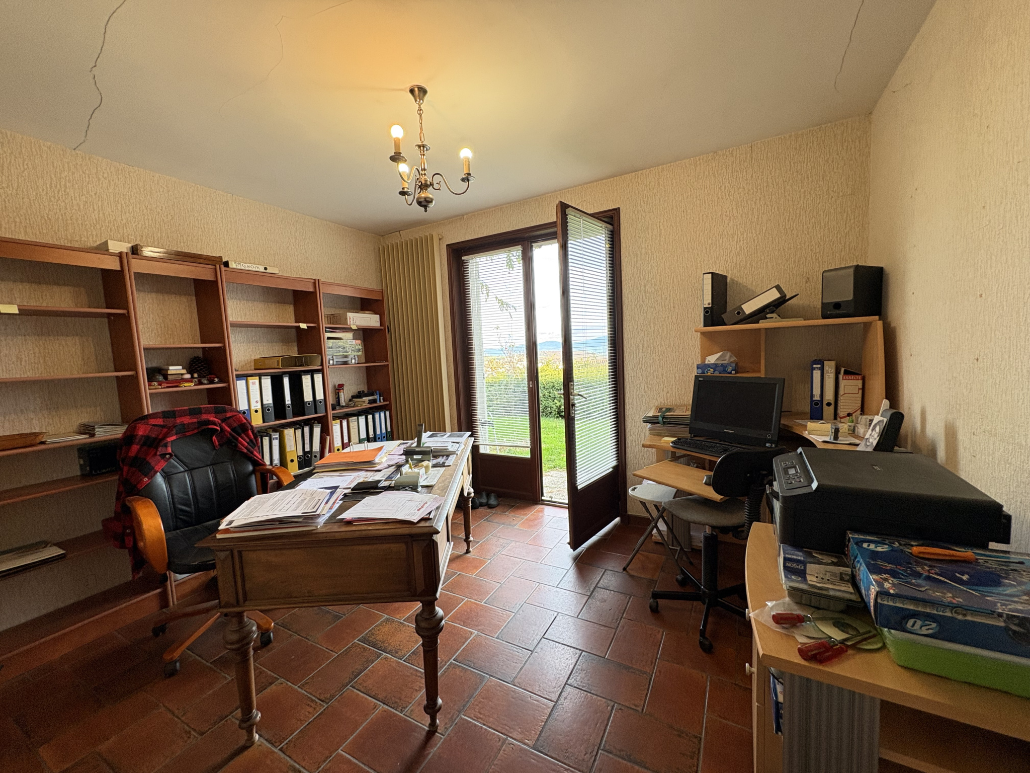 Sorbiers - Maison de 133m2 comprenant au rez de jardin, grande pièce de vie donnant accès de plain pied sur le terrain, cuisine séparée (poss. ouverte), 2 chambres et salle d'eau. A l'étage suite parentale + possibilité 4ème chambre - Sous-sol complet à usage de garage, buanderie, bureau. Piscine avec pool house. 1219m2 de terrain. Vue imprenable. Pompe à chaleur.
