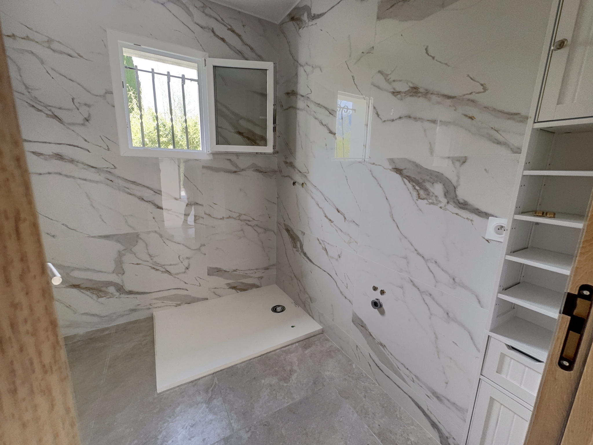A vendre sur SANTA MARIA POGGIO (plaine), sur un terrain de 521 m2, une MAISON T3 de plain-pied comprenant un dégagement, un séjour avec emplacement pour cuisine américaine, 2 chambres, un dressing, une salle de douche avec WC + une terrasse (26.32 m2). Maison neuve qui sera climatisée, d'une superficie habitable de 68.60 m2 environ. Située proche du bord de mer.
