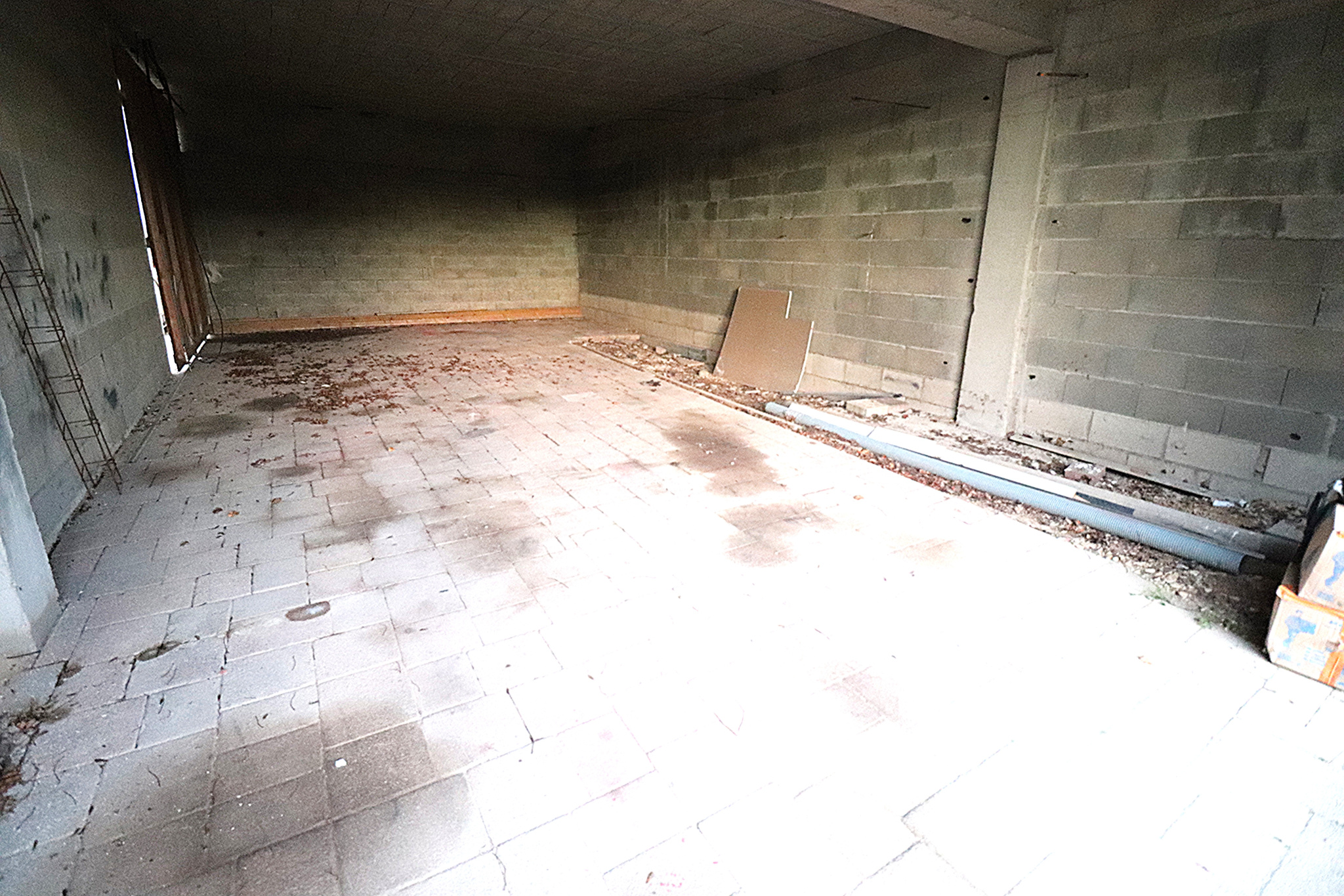 - Au rez-de-jardin: trois grands garages de 77 m2 (12 x 6,42 avec une porte de 3.60 x 2,60 de haut), de 74 m2 (12x6,19 avec une porte de 3,75 x 3,10 de haut) et de 52 m2 (12,60 x 4,10 avec deux portes de 3 x 3,75 de haut et 3,10 x 2,49 de haut).