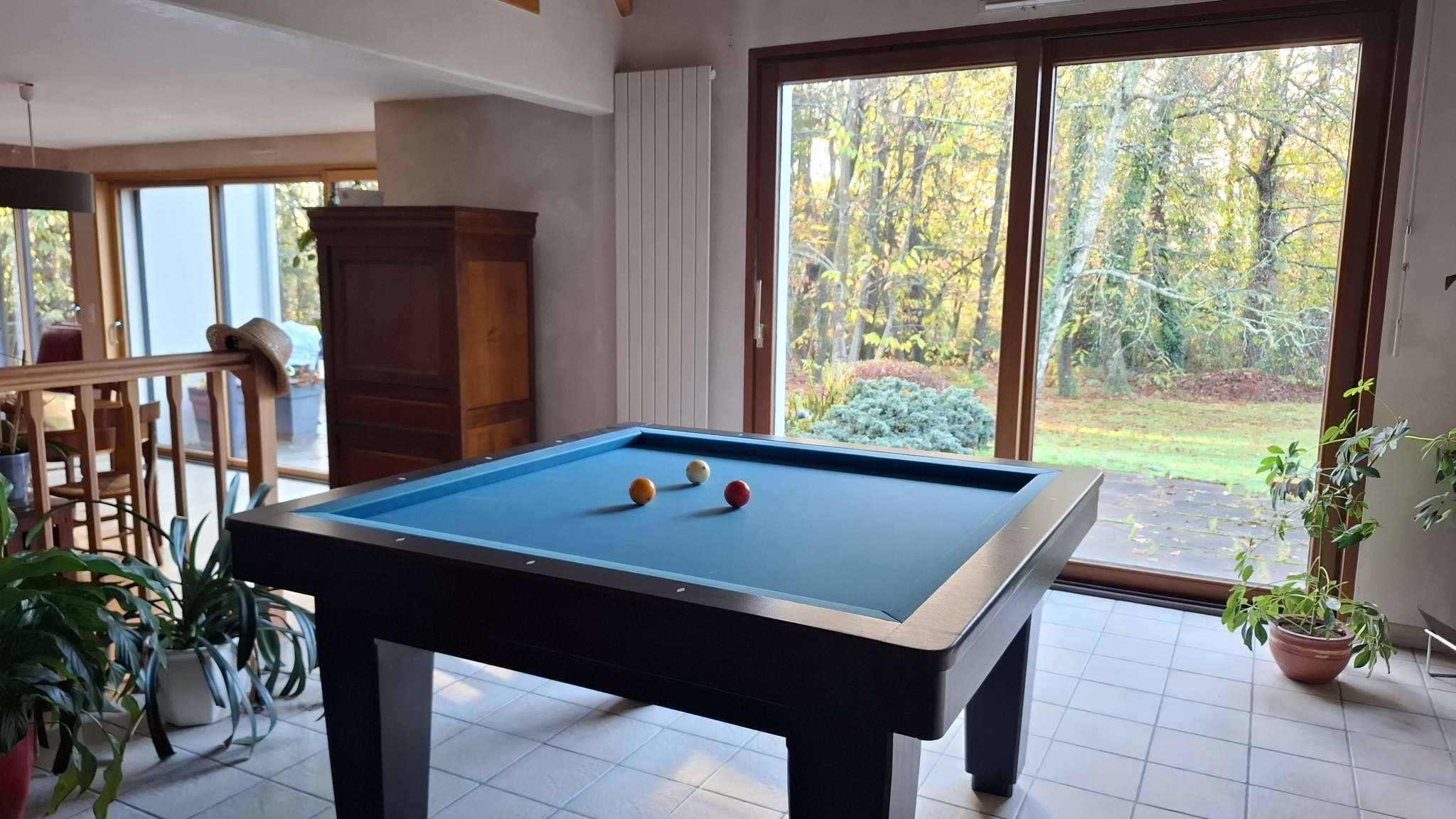 Cette maison lumineuse, ouverte sur la campagne propose une très grande entrée, une cuisine aménagée et équipée, un séjour ensoleillé, un salon avec un poêle à bois, un salon détente / billard, une chambre avec vue sur le jardin et son grand placard