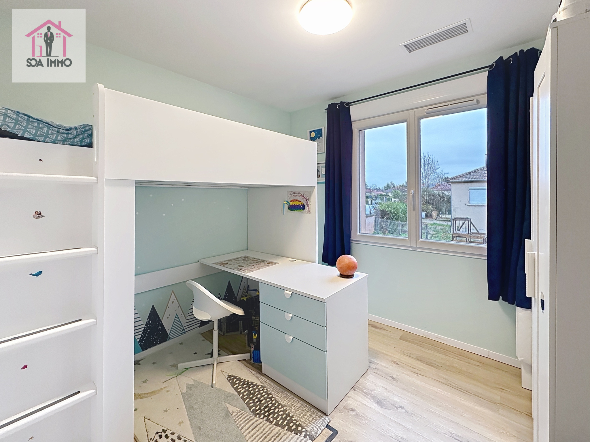 A l'étage un espace nuit composé de 4 chambres, toilette séparée, grande salle de bain avec baignoire + douche, et salle de jeux 20 m2 (qui peut être transformée en salon) ainsi qu'une buanderie aménagée. Etage entièrement climatisé par pompe à chaleur air/air réversible de type gainable avec régulation pièce par pièce pour un confort maximal été comme hiver.