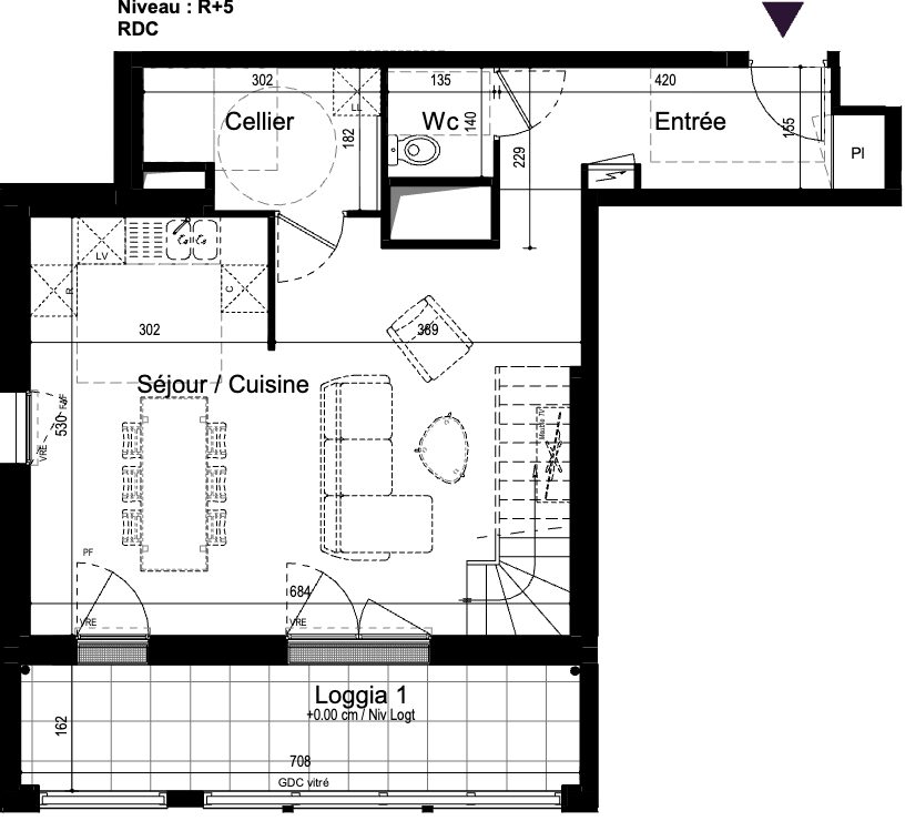 - Sur le premier niveau : séjour 33,73m2+entrée 6,92m2, placards, wc séparés, cellier 4,95m2, expo sud et ouest, terrasse 11,3m2