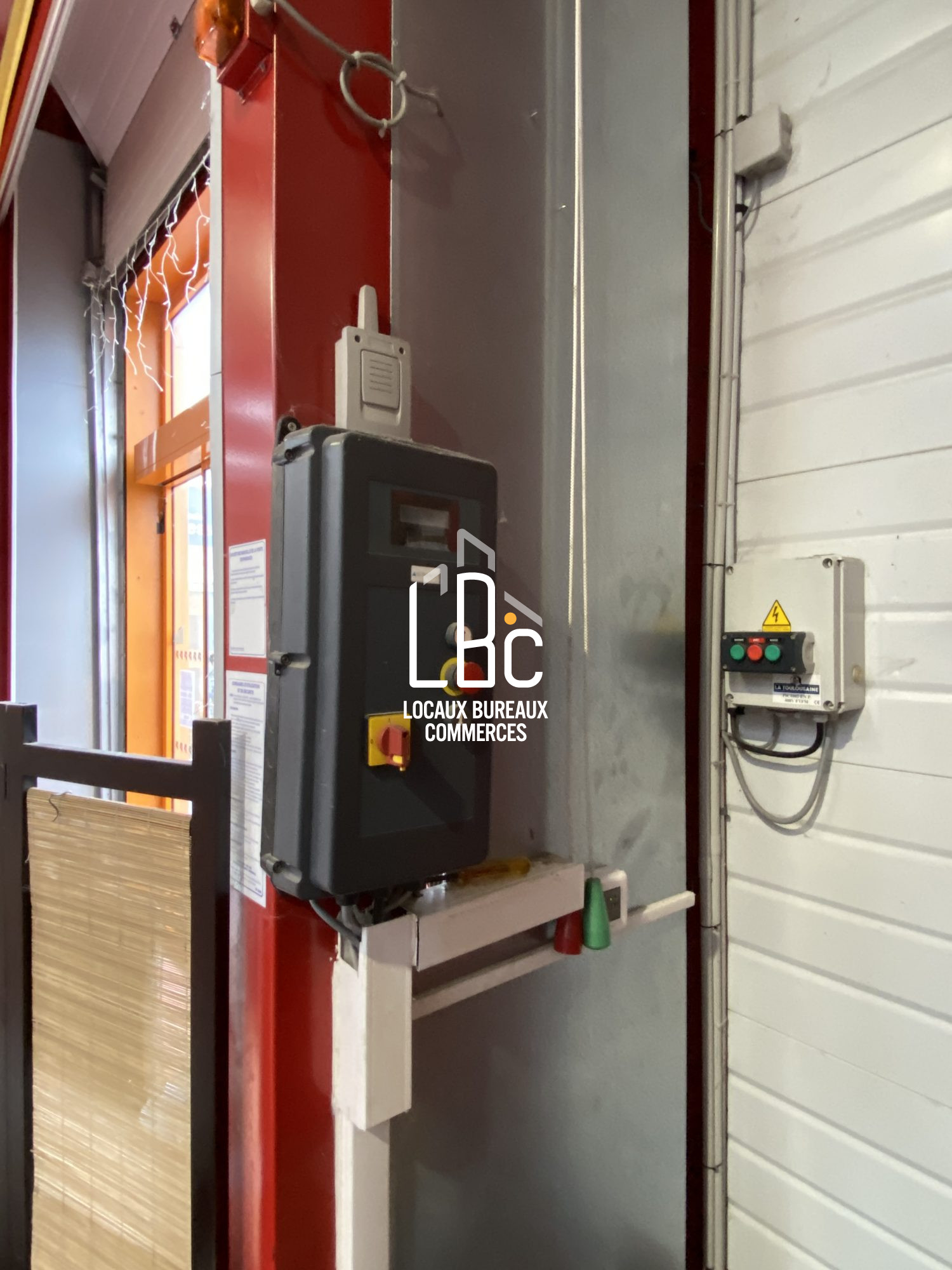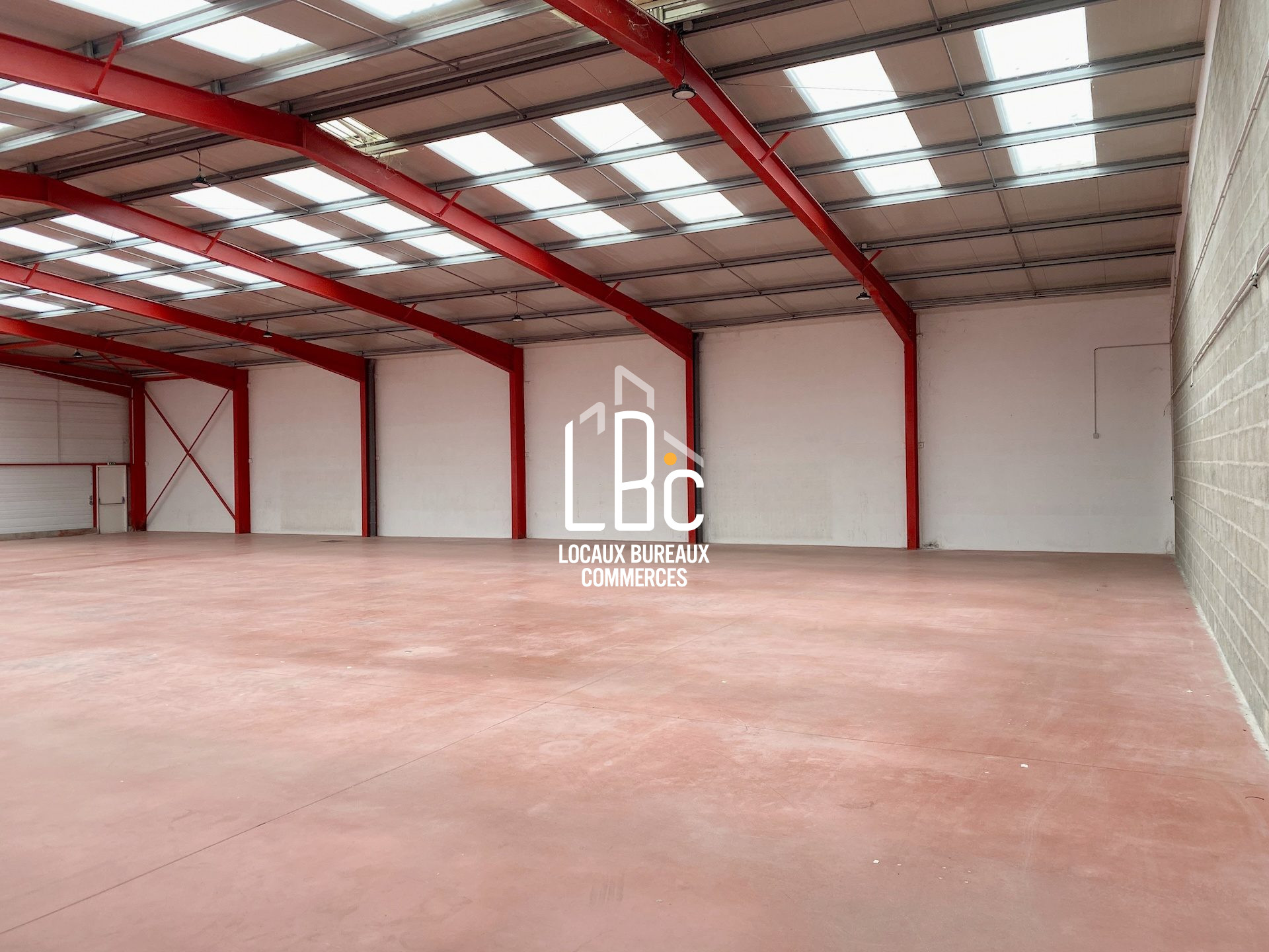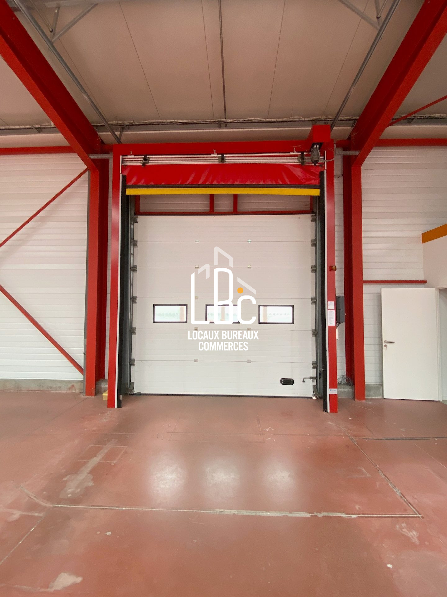 Porte sectionnelle, 3 sorties de secours, WC, point d'eau, parking