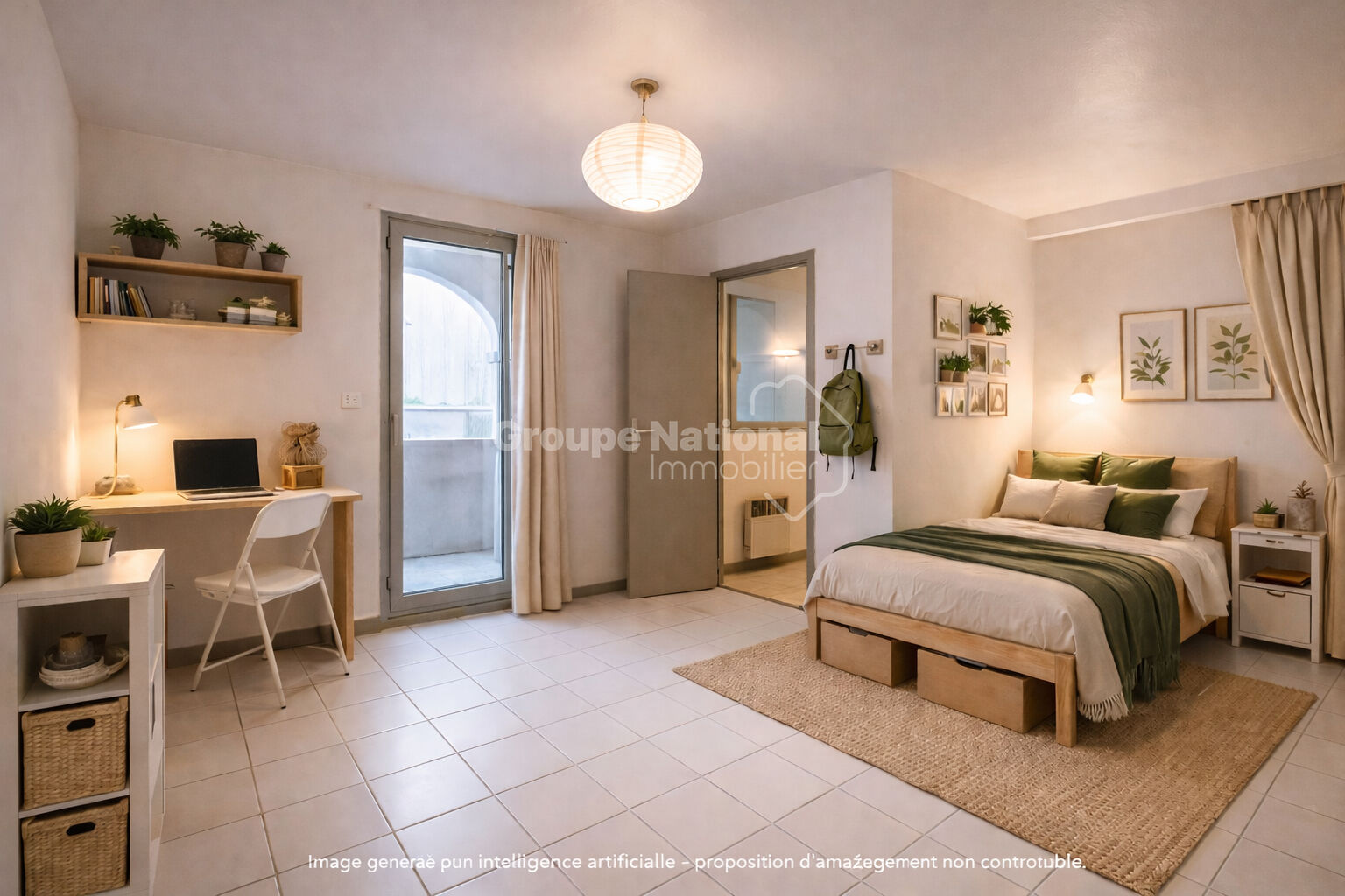Il dispose d'une entrée avec placard de rangement, un grand séjour de 20,89 m² donnant accès à une terrasse privative de 8m² environ, une cuisine, et une salle d'eau avec toilettes.