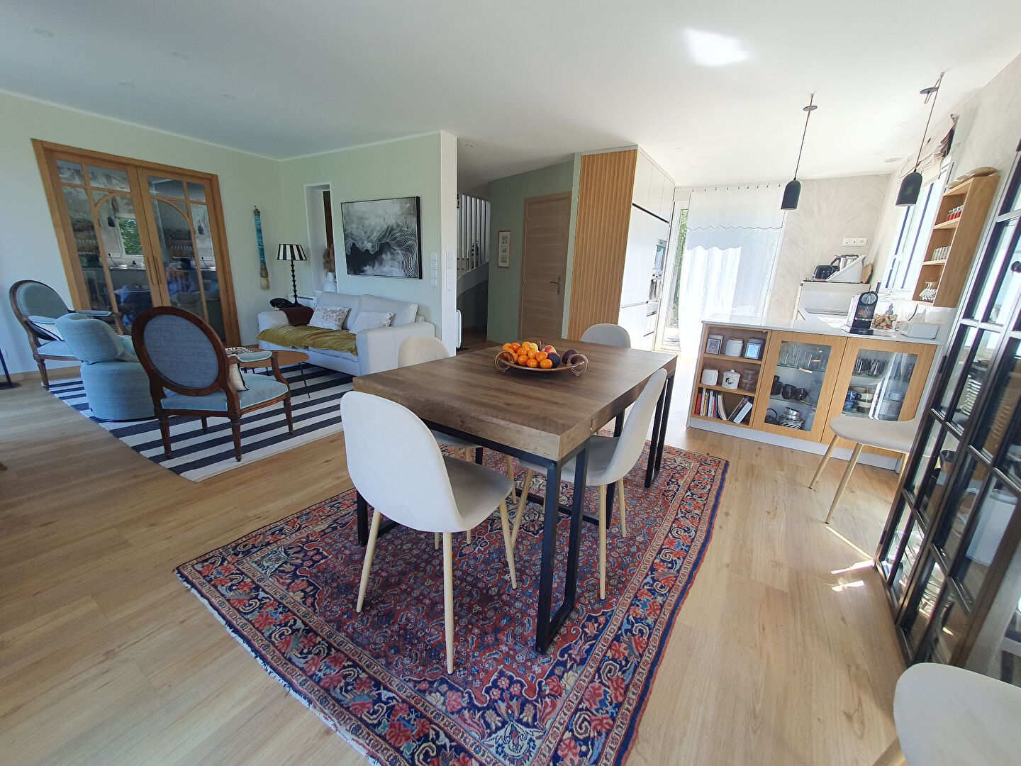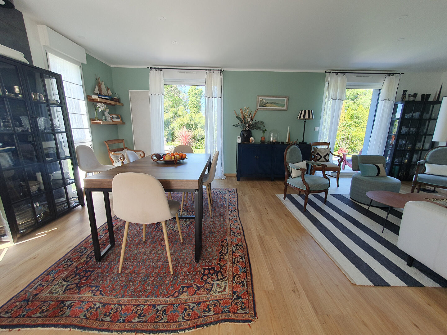 A 1 km du bourg de Fouesnant, venez découvrir cette magnifique maison de 1975, entièrement rénovée avec goût et des matériaux de qualité en 2023. D'une surface de 132 m² sur un terrain de 900 m², on découvre en entrant une très belle entrée avec placards se prolongeant sur une cuisine aménagée équipée ouverte sur la salle à manger et le salon exposé OUEST. Derrière une magnifique porte verrière, un espace salon télé pouvant faire office de chambre séparée vient s'ajouter. Le tout ayant un accès direct à la terrasse bois et au jardin. Une salle d'eau et un wc terminent le rez-de-chaussée. L'étage dessert un palier sur pin massif offrant trois grandes chambres très confortables et lumineuses, salle d'eau et wc indépendant.