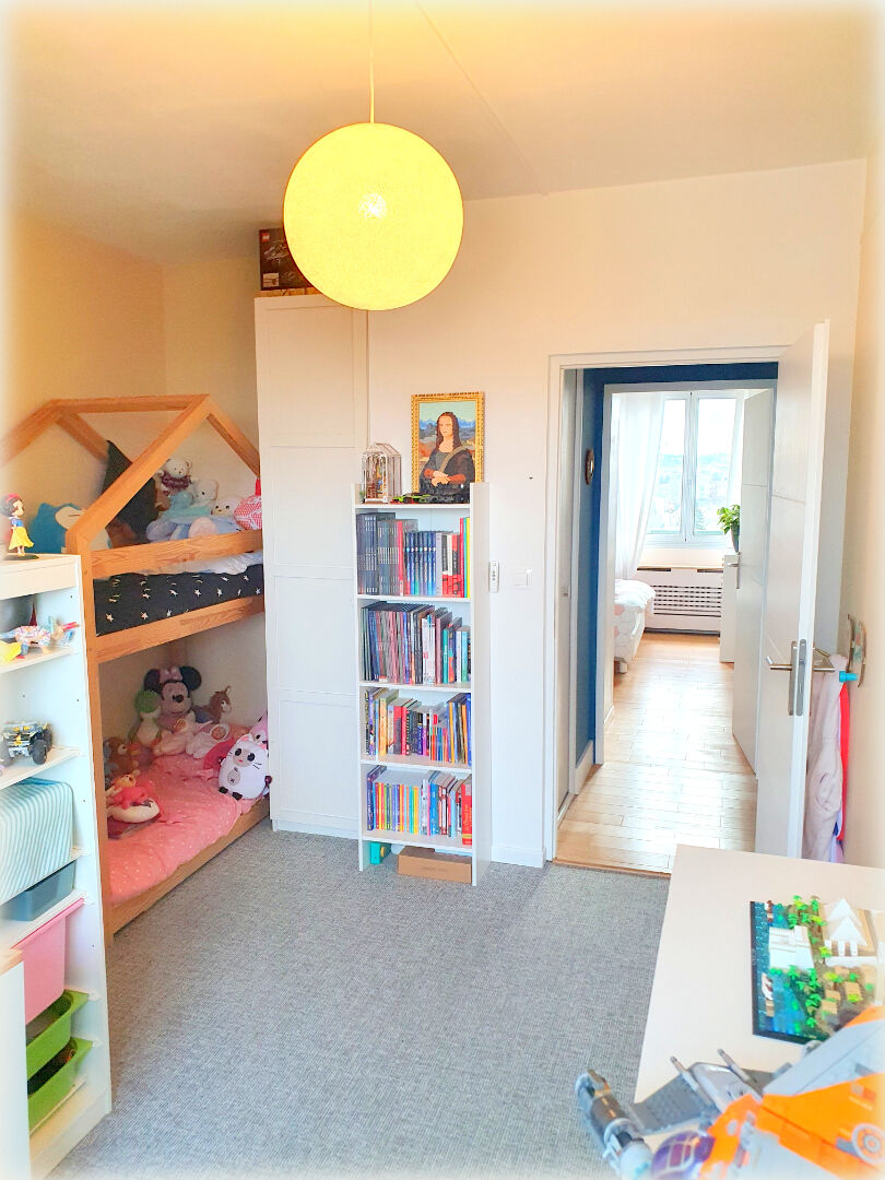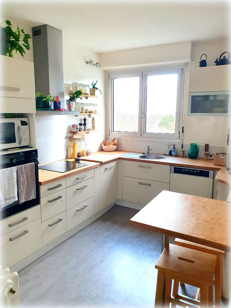 Situé à proximité de tout (commerces, gare, activités culturelles ou sportives, écoles, Lycée, etc.), vaste appartement traversant de type F4 au dernier étage d'un immeuble en pierres de taille, offrant notamment : un double séjour exposé Sud-Ouest avec vue sur l'horizon (Paris...), une cuisine indépendante entièrement aménagée, deux belles chambres non contiguës, une salle de bains (avec fenêtre), et des toilettes séparées. Mais aussi, du double vitrage à chaque ouverture, des volets motorisés, du parquet massif, un tableau électrique à disjoncteurs électroniques, une cave, et un box individuel en sous-sol. UN FLORILÈGE DE POINTS FORTS À VENIR DÉCOUVRIR SANS TROP TARDER ... ! DPE : E ~ GES : E ~Date de réalisation du DPE : 16/06/2025 estimation du coût annuel de l'énergie : 1810Euro à 2480Euro/an (prix de l'énergie considéré sur 2021/2022/2023), copropriété de 84 lots (dont 28 appartements), charges 315 Euro/mois soit 3780Euro /an qui incluent : chauffage + eau froide (avec compteur individuel, ici pour 4 personne) + syndic professionnel + ascenseur + entretien et éclairage des parties communes intérieures / extérieures + assurance).