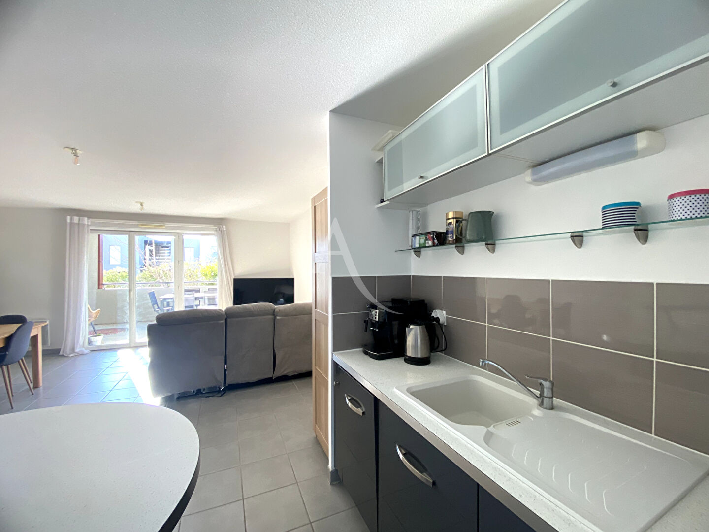 Un hall d'entrée avec dressing, un espace buanderie avec WC et lave-mains. Le hall s'ouvre ensuite sur un vaste séjour lumineux et traversant donnant accès à la première terrasse exposée Sud-Ouest, avec cuisine ouverte entièrement meublée et équipée, prolongée par la seconde terrasse Nord-Est.