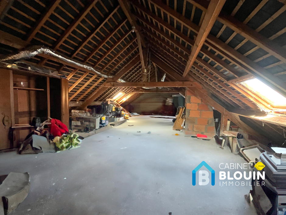 Grenier aménageable de plus de 65 m² avec plancher béton et des arrivées d'eau et électricité.