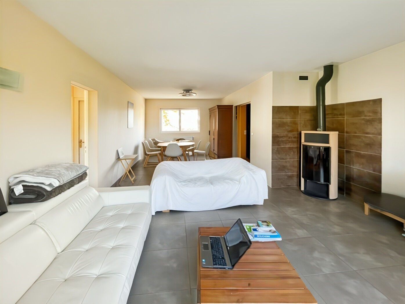 Offrant un cadre de vie paisible et sans vis-à-vis, elle dispose d'une surface habitable de 165 m² répartie en six pièces, dont quatre chambres, et convient parfaitement à une famille recherchant confort, espace et tranquillité. Le rez-de-chaussée comprend deux chambres, deux salles d'eau, un bureau, un salon lumineux avec poêle à bois ainsi qu'une cuisine aménagée et équipée. À l'étage, un espace dédié aux enfants propose deux chambres supplémentaires et une salle de bain.