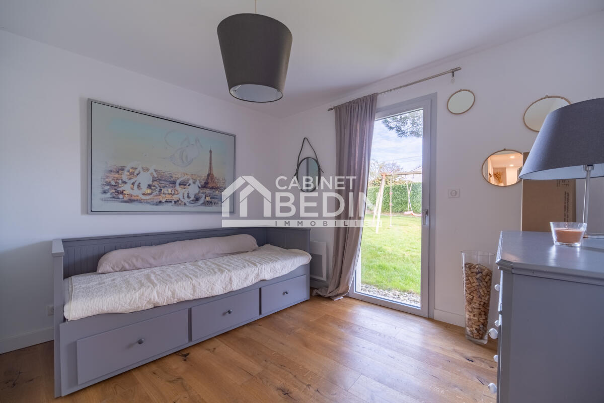 Elle dispose de cinq chambres, plus un espace bureau, idéal pour travailler à domicile. Les prestations de qualité se distinguent par de jolis parquets, des baies vitrées, des volets électriques et une climatisation réversible.
