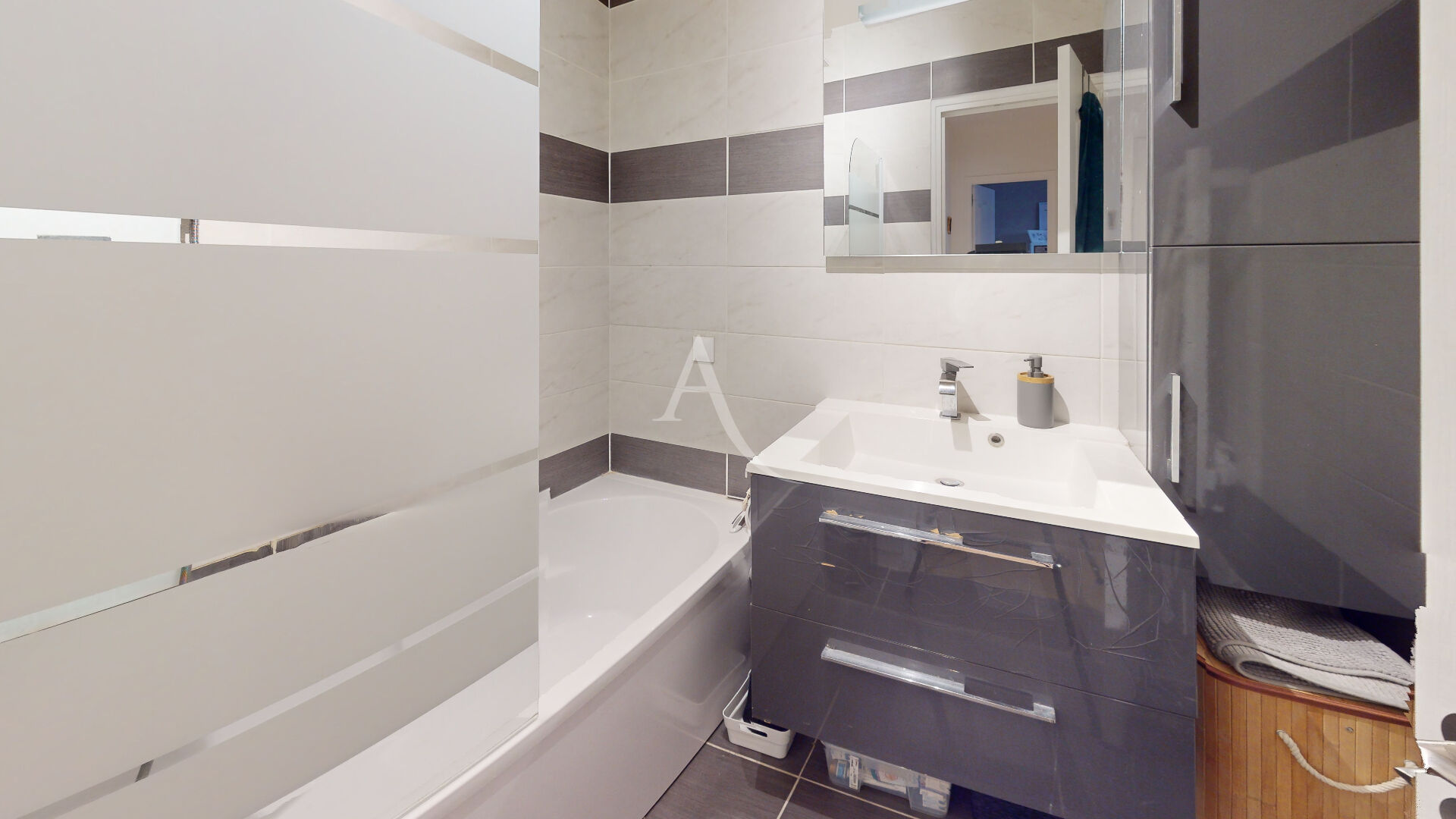 Une entrée menant à un séjour / salle à manger de 37,11 m², équipé d'une climatisation réversible, avec une cuisine américaine aménagée et équipée. Un balcon côté rue ainsi qu'une terrasse à l'arrière, au calme, complètent cet espace de vie.