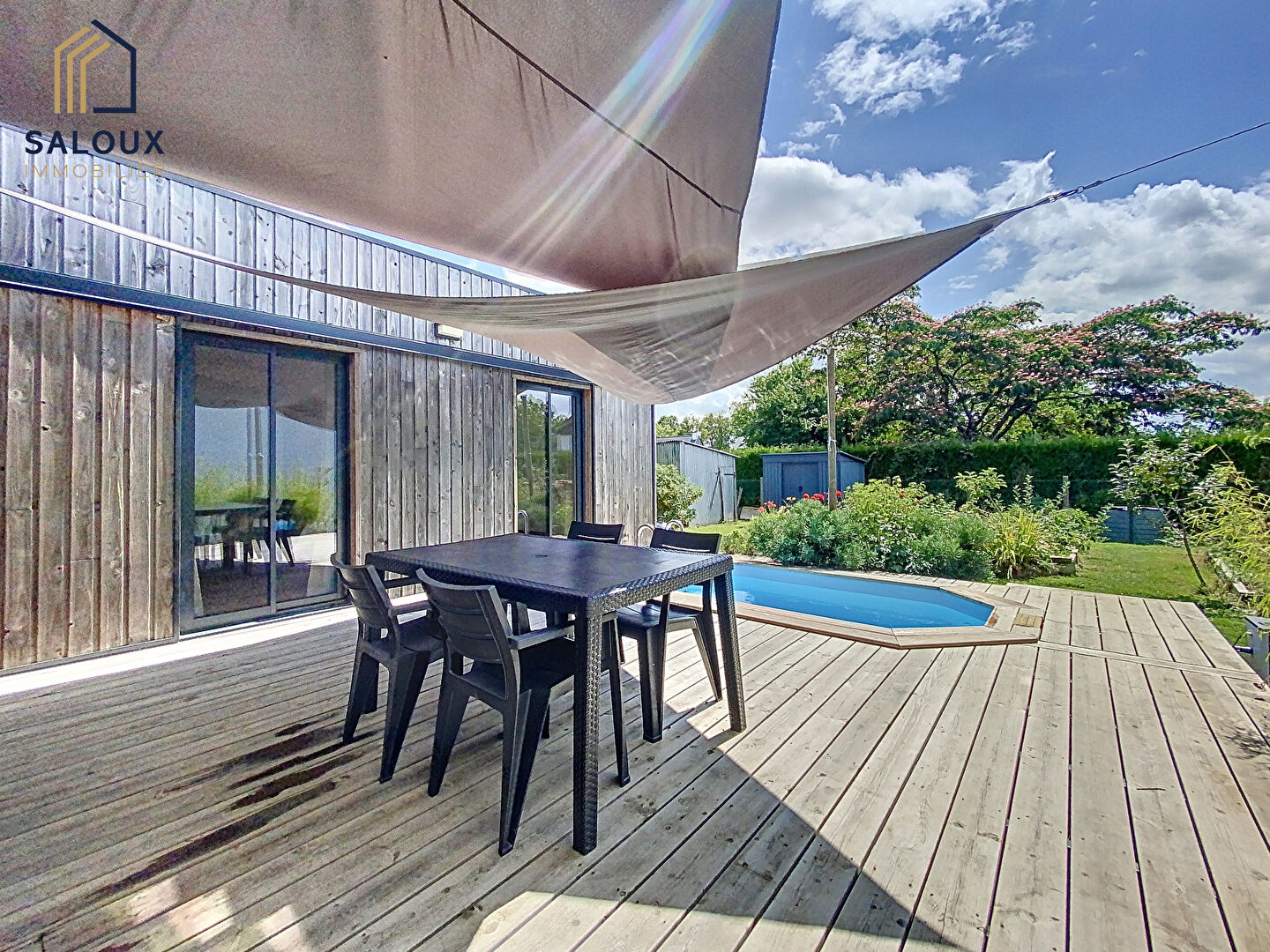 À l'extérieur, vous profiterez d'une agréable terrasse en bois et d'une piscine chauffée par pompe à chaleur.