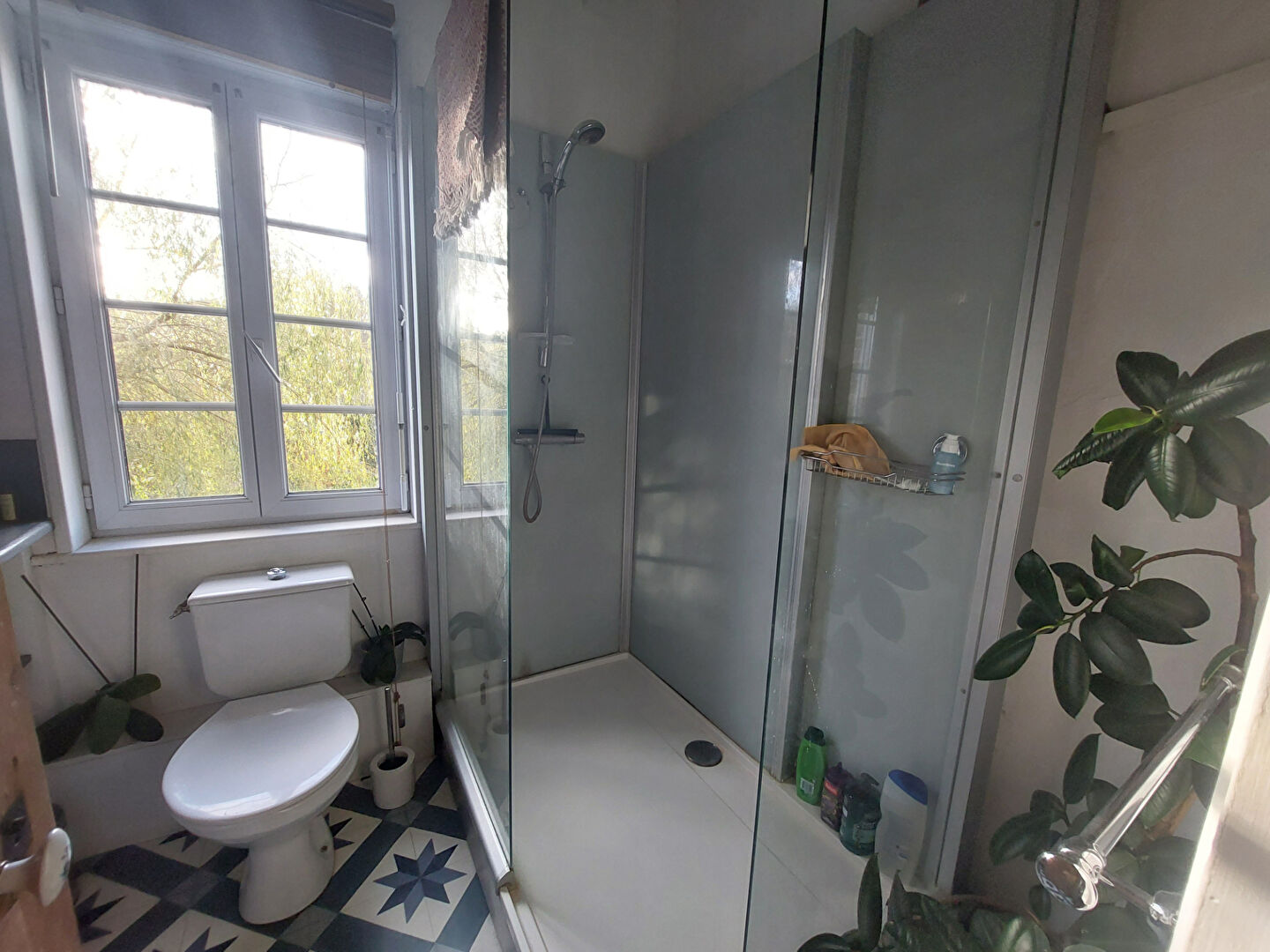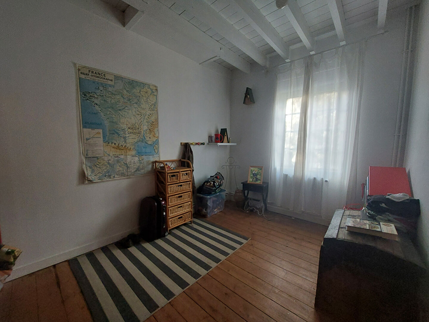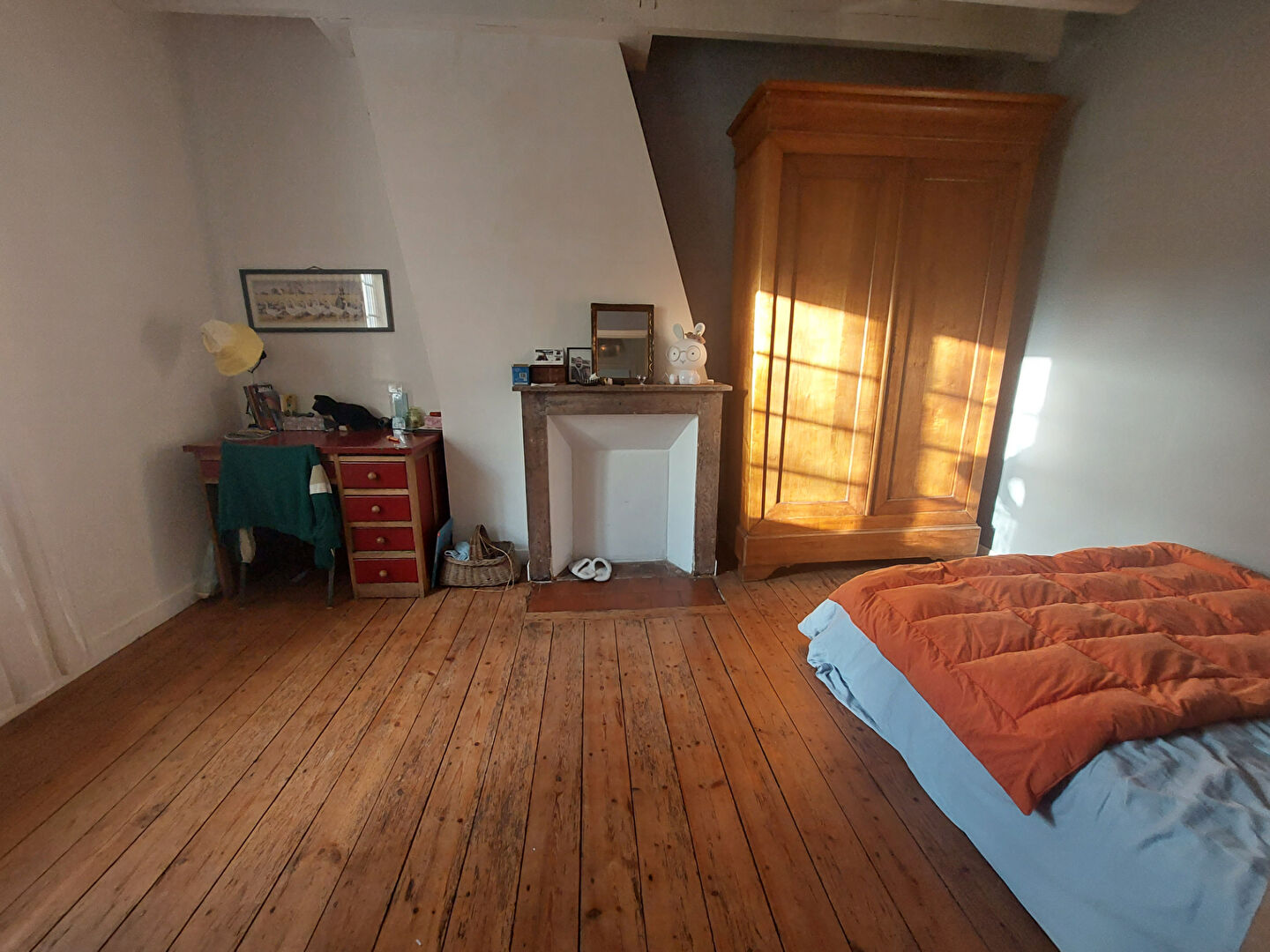 A l'étage, le palier dessert 2 grandes chambres lumineuses avec un très beau parquet dont une avec cheminée, une salle de douche avec wc