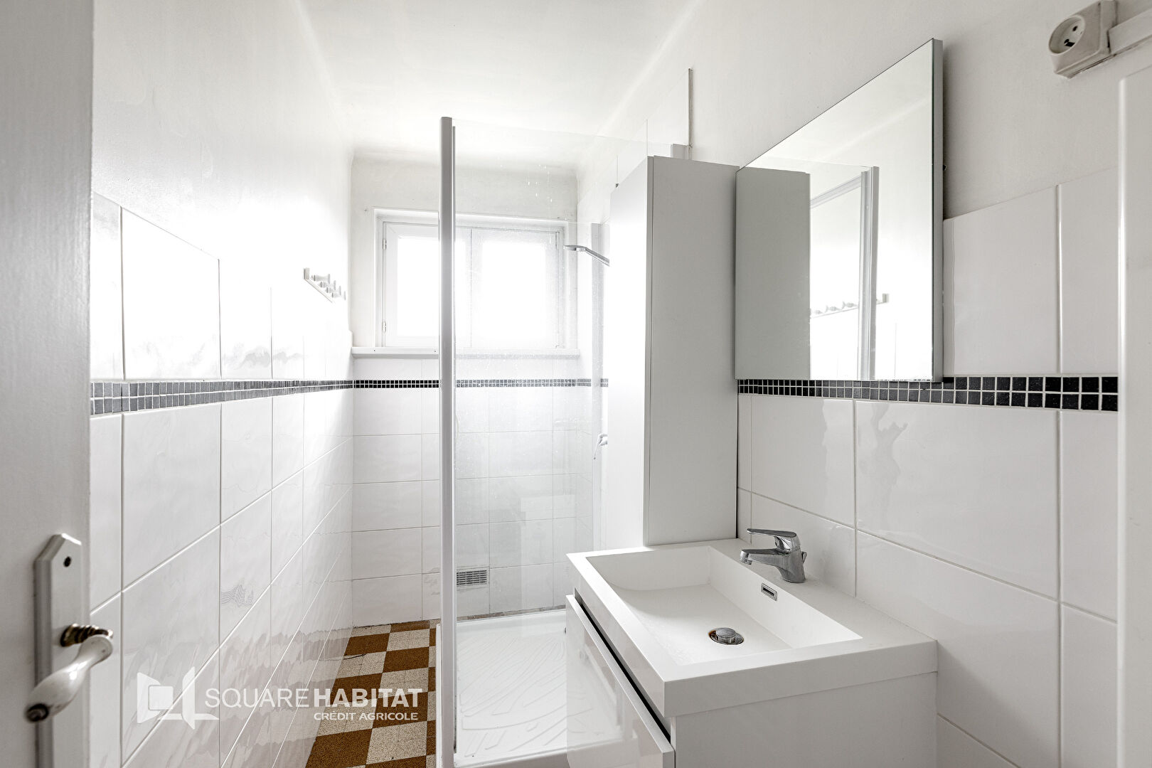 Au premier étage, un hall d'entrée dessert un séjour très lumineux ainsi qu'une cuisine équipée. Une salle de douches et des wc sont présents.