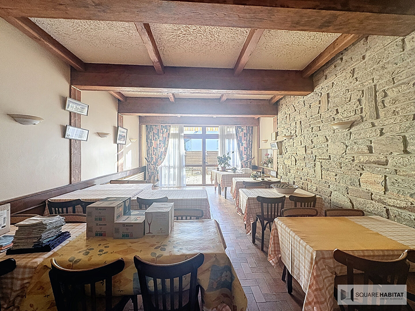 - En rez-de-chaussée du bâtiment principal : réception, sanitaires PMR, bar, 2 salles de restaurant dont une donnant sur terrasse exposée Sud-Ouest.