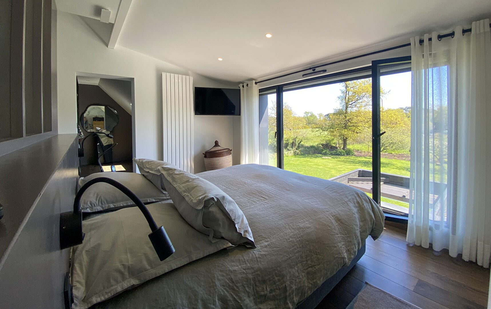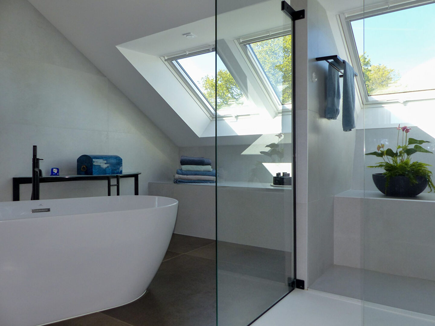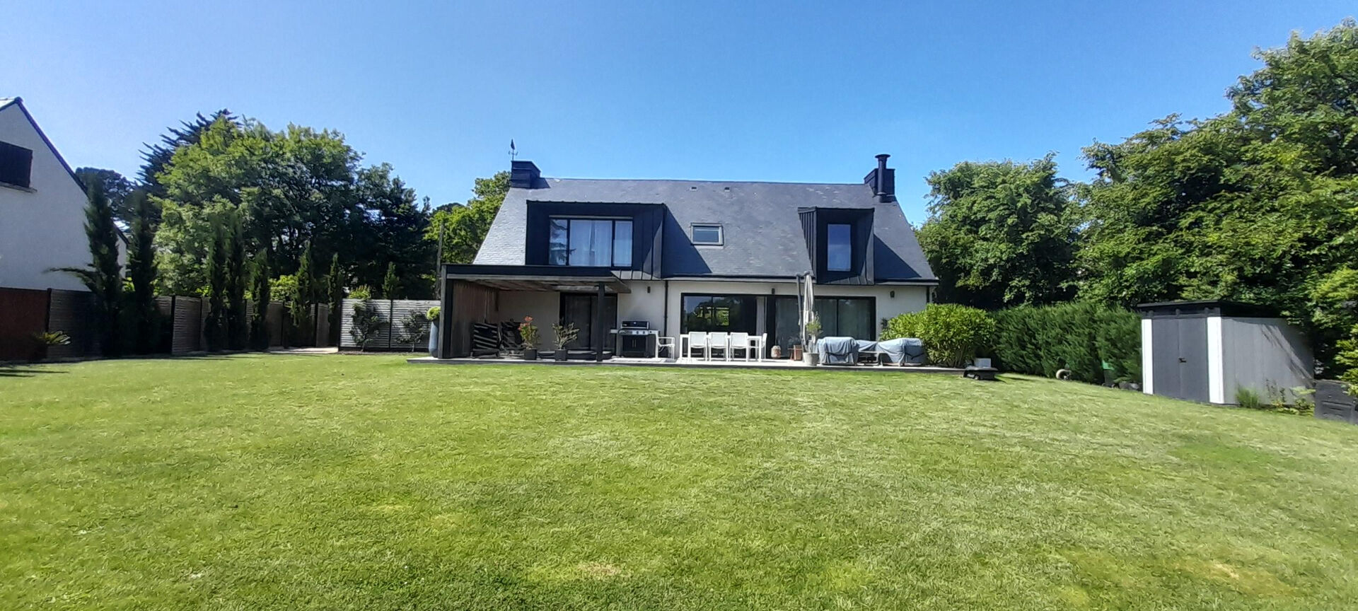 A LA TRINITÉ SUR MER - 56470 Cette très jolie maison d'architecte à quelques minutes des Quais parfaitement rénovée avec de très belles prestations ! Elle se compose d'un grand hall d'entrée, un WC, un vaste salon séjour très lumineux avec un poêle à bois, une cuisine ouverte aménagée et équipée, une chambre donnant sur une grande terrasse orientée sud avec une salle d'eau et WC indépendant . A l'étage , côté nuit vous bénéficiez de deux chambres avec salles d'eau et dressing, dont une suite parentale de 36 m² avec vue sur le jardin magnifiquement arboré ! Une buanderie, un garage carrelé complètent cette très belle demeure sur son terrain de 1500 m², au calme, à l'abri des regards ...