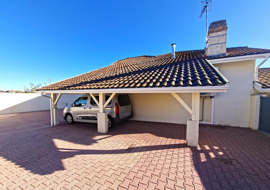 À l'extérieur, vous trouverez un jardin entièrement clos. Vous bénéficierez également d'un abri-voiture, d'un large parking pouvant accueillir jusqu'à cinq véhicules, ainsi que de plusieurs terrasses permettant de profiter des extérieurs tout au long de l'année.