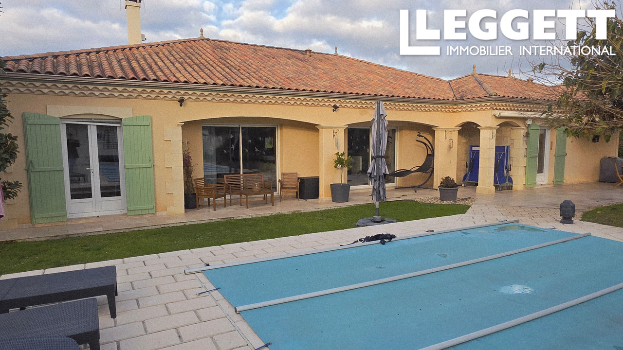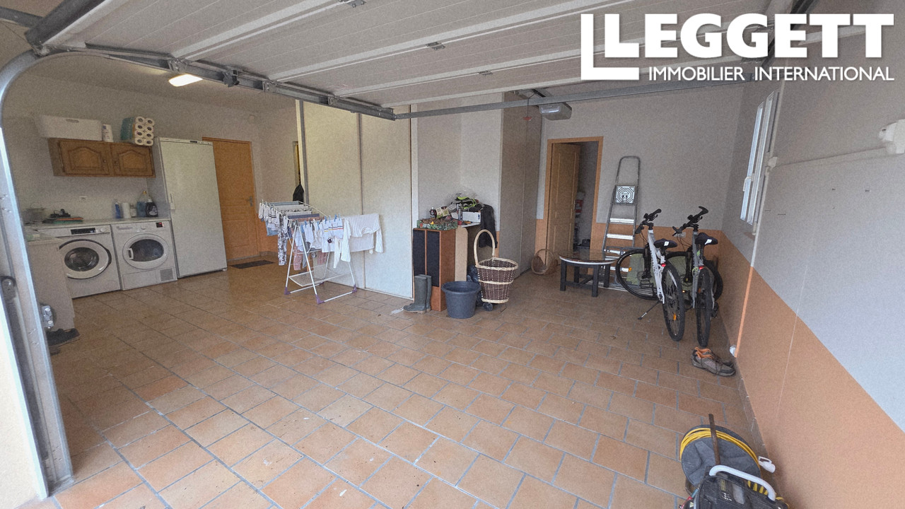 Deux garages isolés, chauffés de 34 m². Terrasse couverte de 20 m², portail télécommandé, stationnement privé, boulodrome, barbecue, deux cabanons, piscine au sel de 9/5 m avec son local technique. (Pompe neuve !)