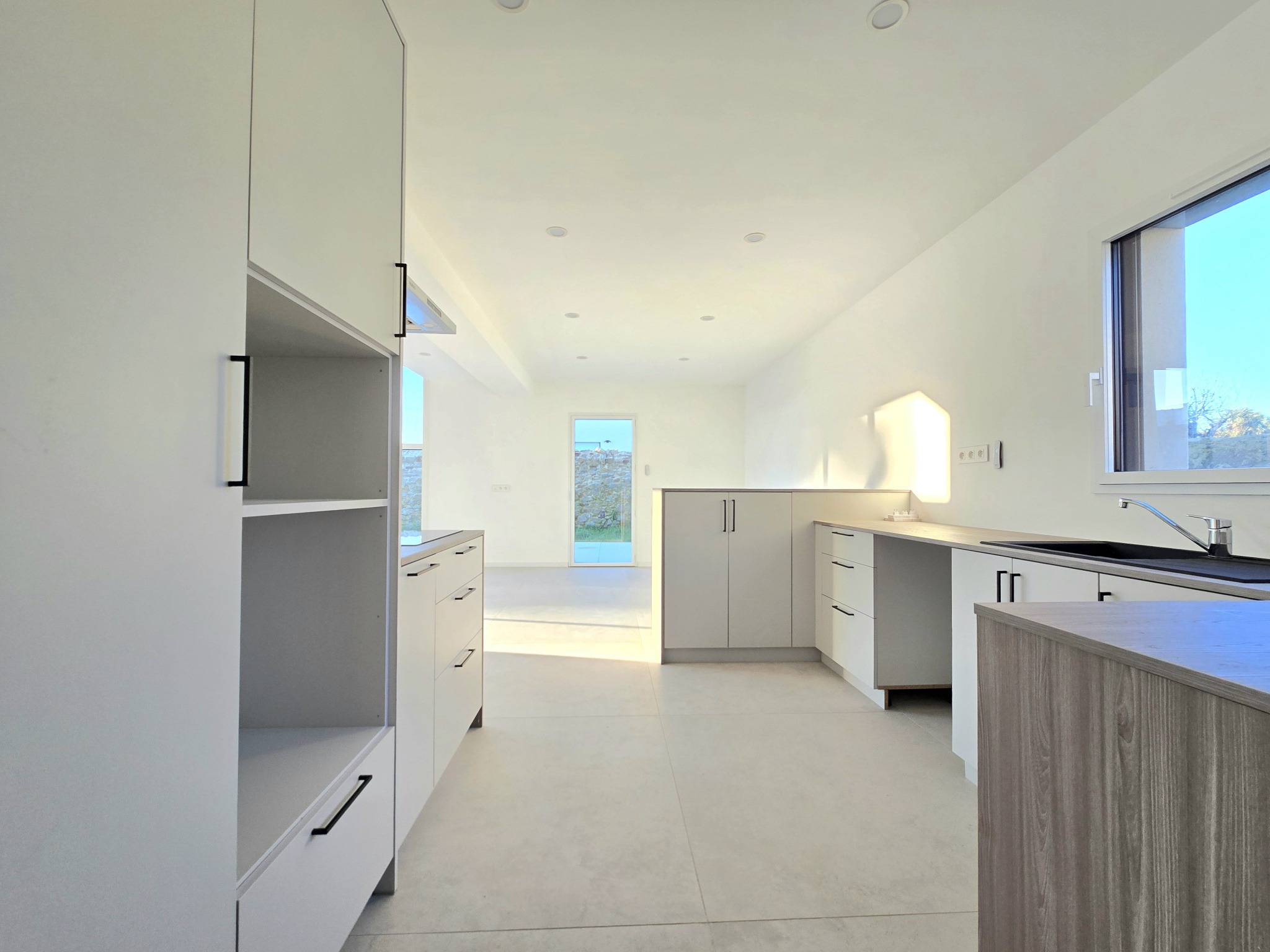 La pièce de vie, véritable coeur de la maison, séduit par ses grandes ouvertures, baignant l'espace de lumière naturelle et s'ouvrant sur une belle terrasse. La cuisine ouverte, aménagée et équipée, complète cet espace chaleureux et convivial.