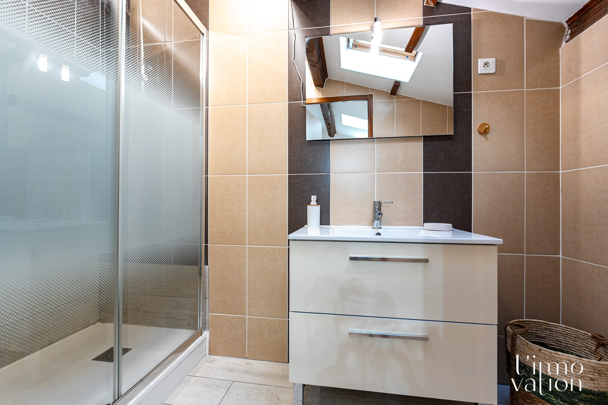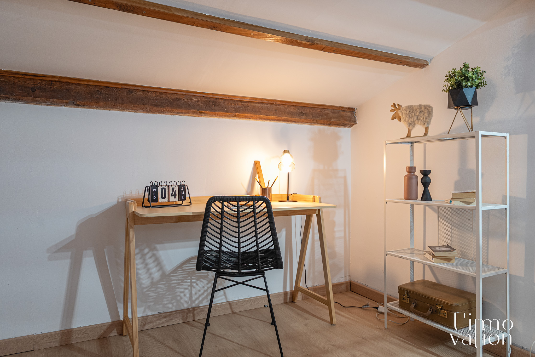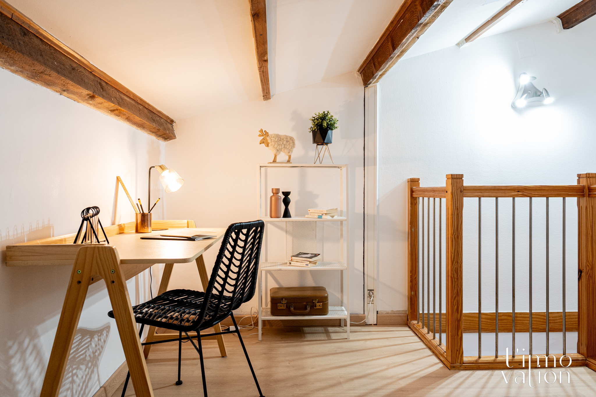 - un petit espace bureau / rangement en mezzanine (8m2 au sol / 3,58 m2 carrez)