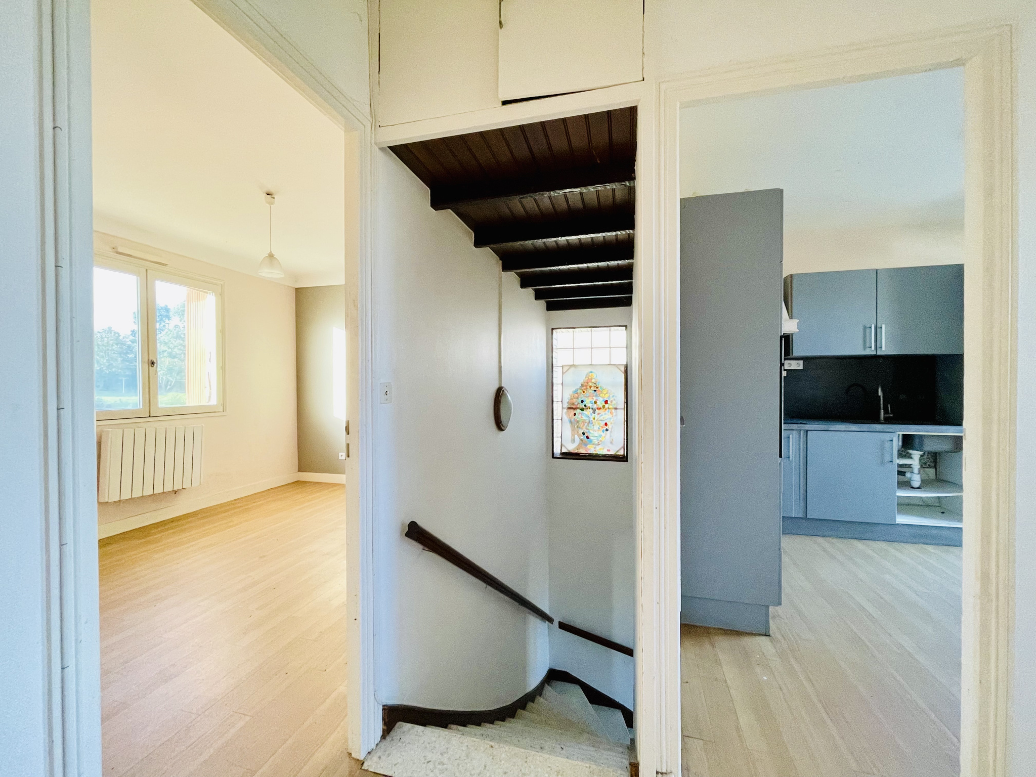 REF. 34910 : 88 000 euros HAI, Confolens (16), proche centre ville, en lotissement, pavillon mitoyen de 1975 à rafraichir, à usage d'habitation, 120 m2 env. utilisables composé au rez de chaussée : entrée/bureau, 2 chambres, salle d'eau/wc, dégagement, à l'étage : palier, cuisine aménagée équipée, salon/séjour avec balcon, 2 chambres, salle de bain, wc. Chauf. électrique, assainissement collectif. Garage attenant de 29 m2, jardin attenant avec abri et verrière, le tout sur 409 m2 .