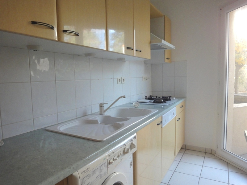 Quartier résidentiel, dans résidence sécurisée, T2 de 49 m2 rénové, cuisine aménagée, séjour sur terrasse, chambre, salle de bains, wc, cave et garage