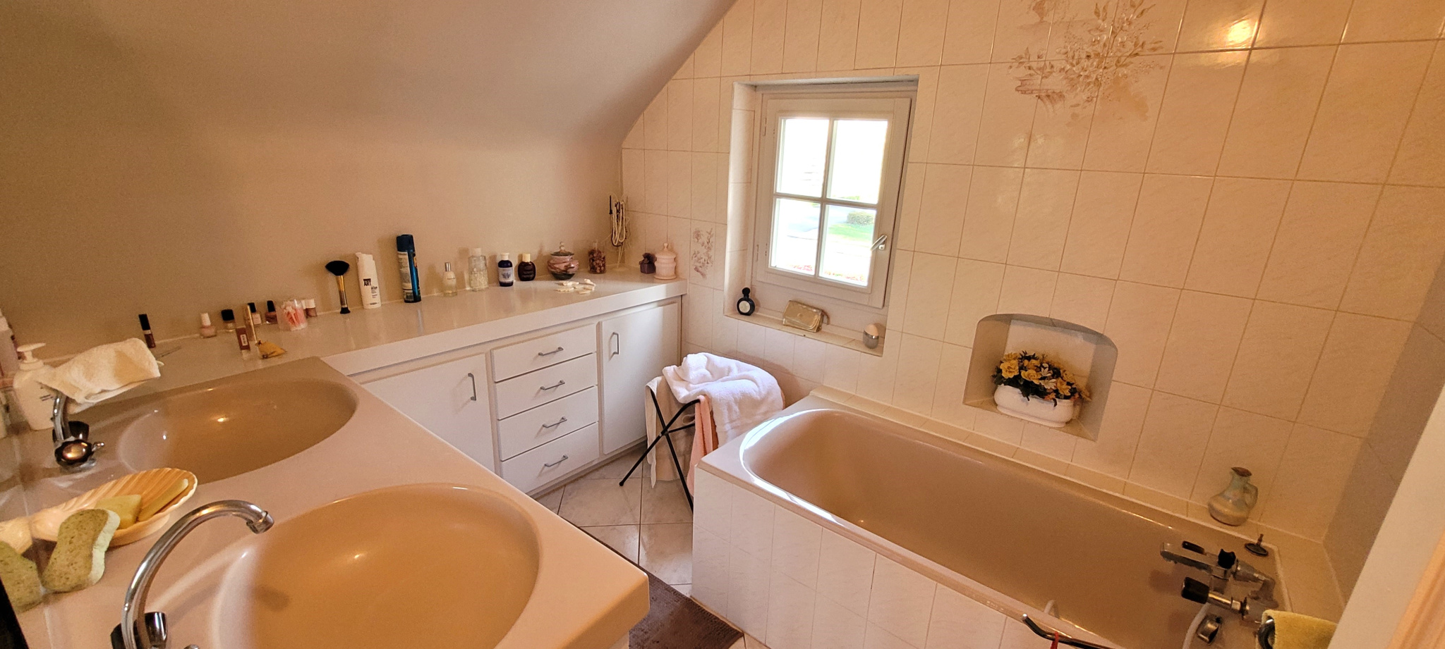 À l'étage, un palier-dégagement dessert quatre chambres lumineuses, offrant à chacun son propre espace de repos et d'intimité. Des toilettes et une salle de bains complètent cet étage avec élégance et fonctionnalité.
