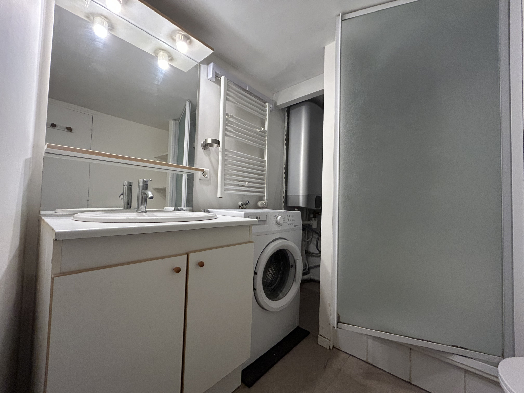 Il est constitué d'un grand salon/séjour, d'une cuisine aménagée et équipée, d'une salle d'eau avec WC et d'une pièce à usage de chambre sans vis à vis!