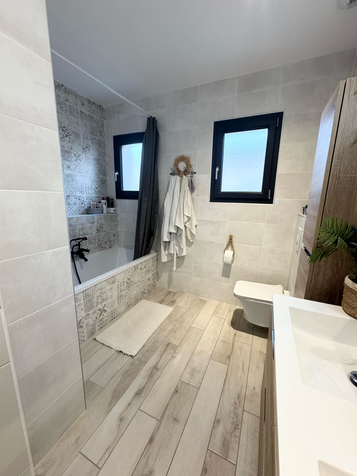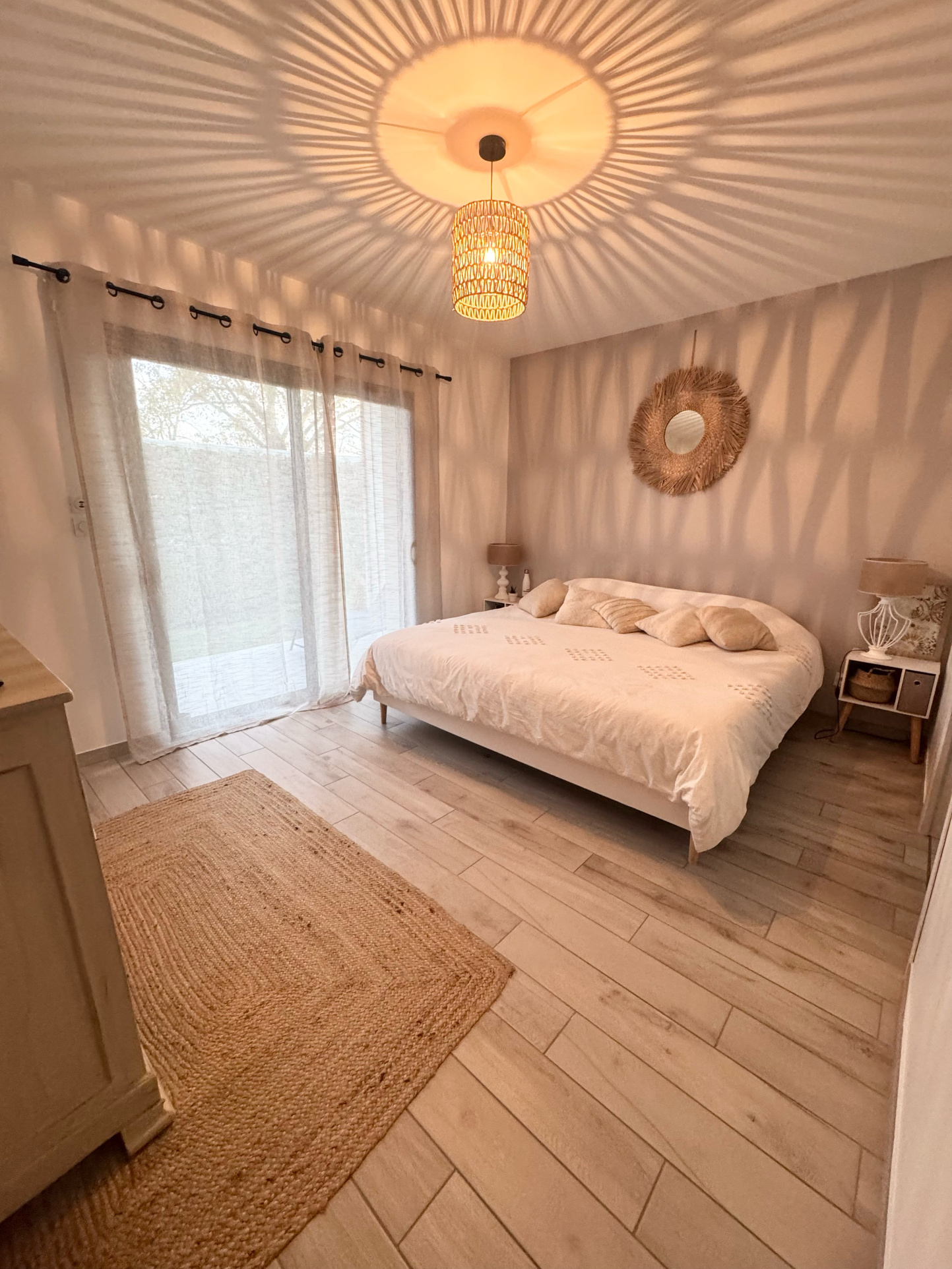 La partie nuit propose trois chambres, dont une suite parentale, ainsi qu'une salle de bains avec WC.