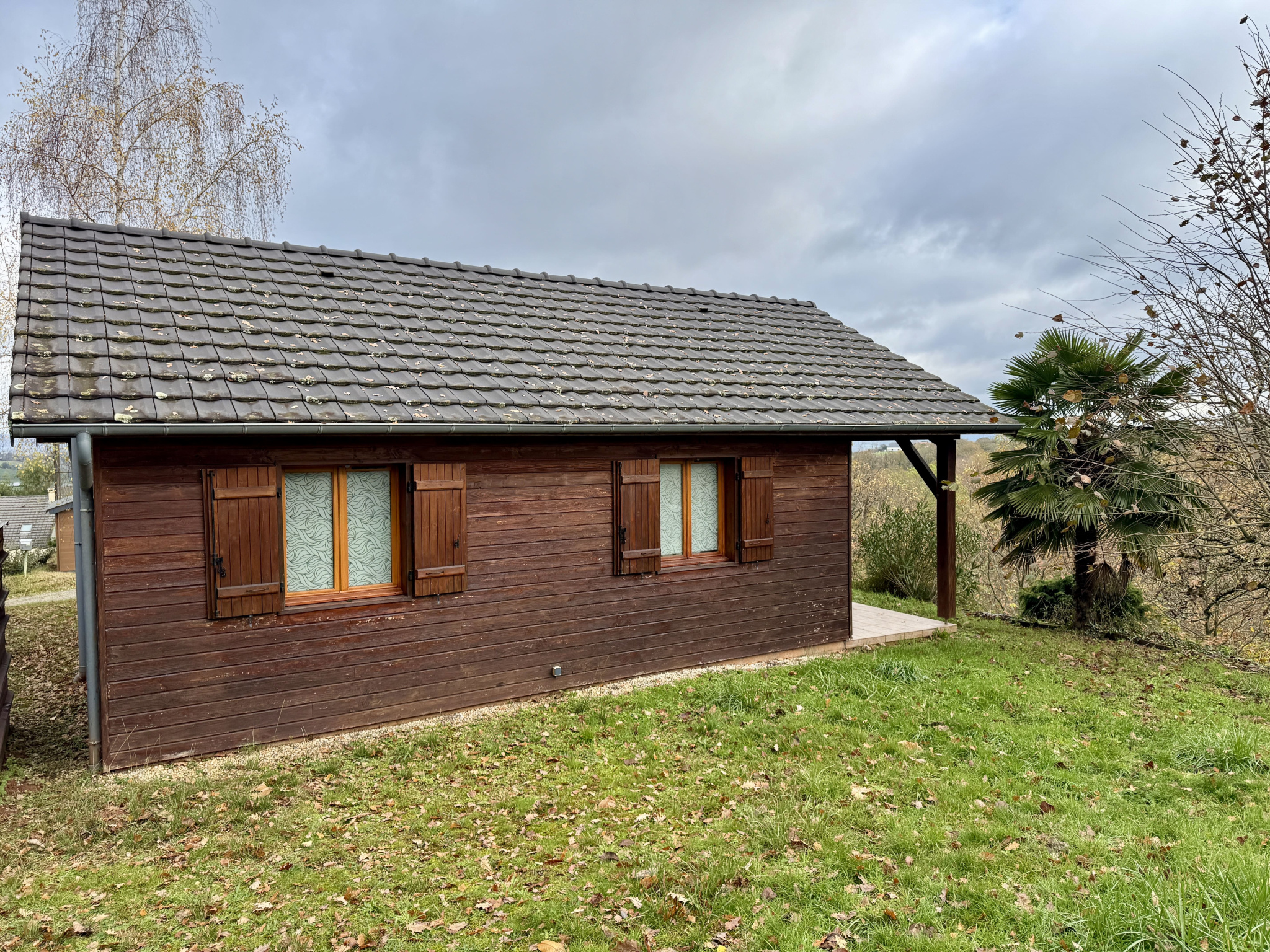 Chalet d'environ 42 m2 habitables offrant environ 42 m2 habitables avec une pièce de vie, un coin cuisine, 2 chambres et salle d'eau.