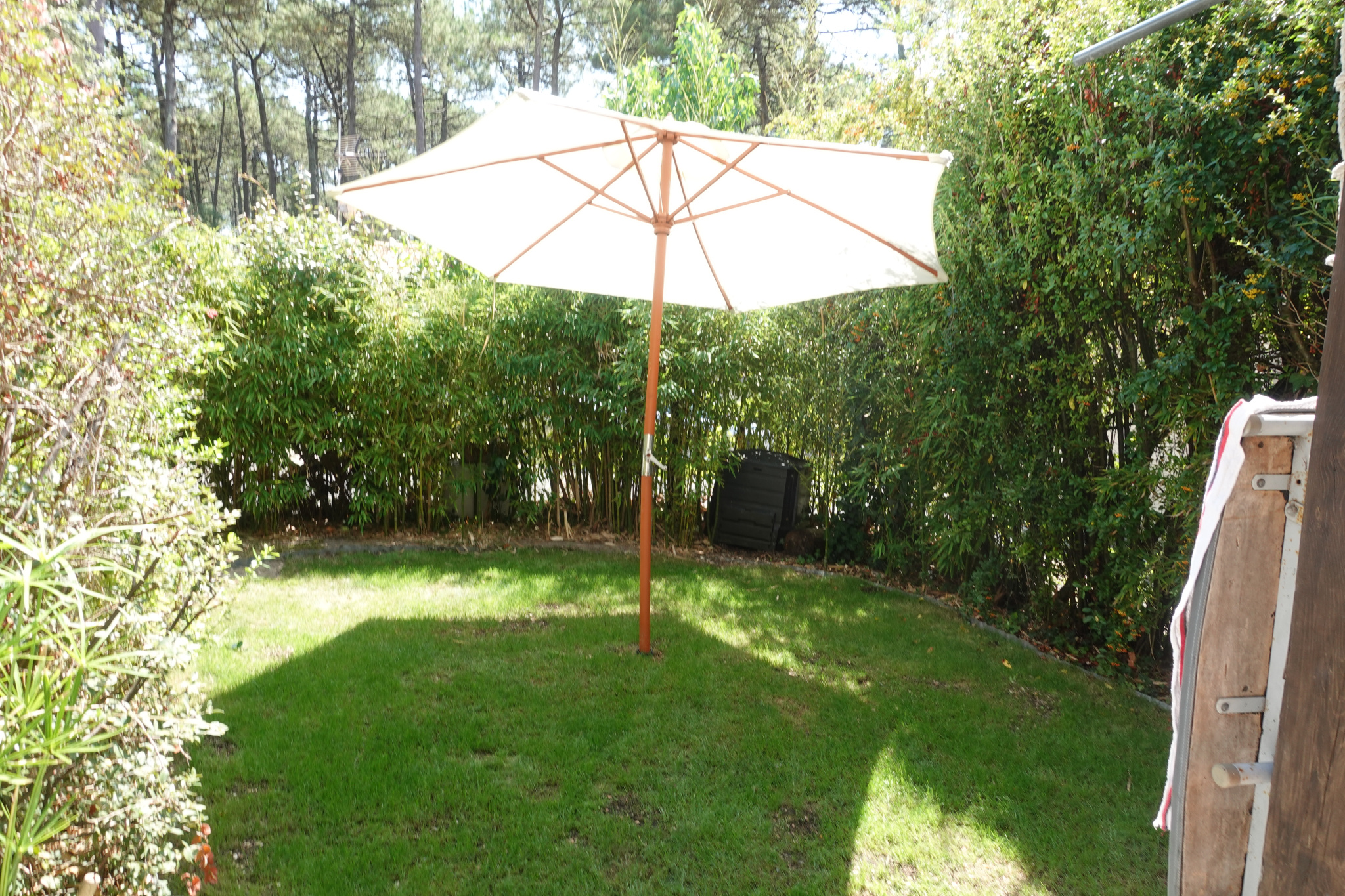 Elle dispose d'une entrée distribuant la salle d'eau et une mezzanine de couchage puis la pièce de vie et la chambre toutes deux ouvertes sur une terrasse sans vis à vis et un jardinet.