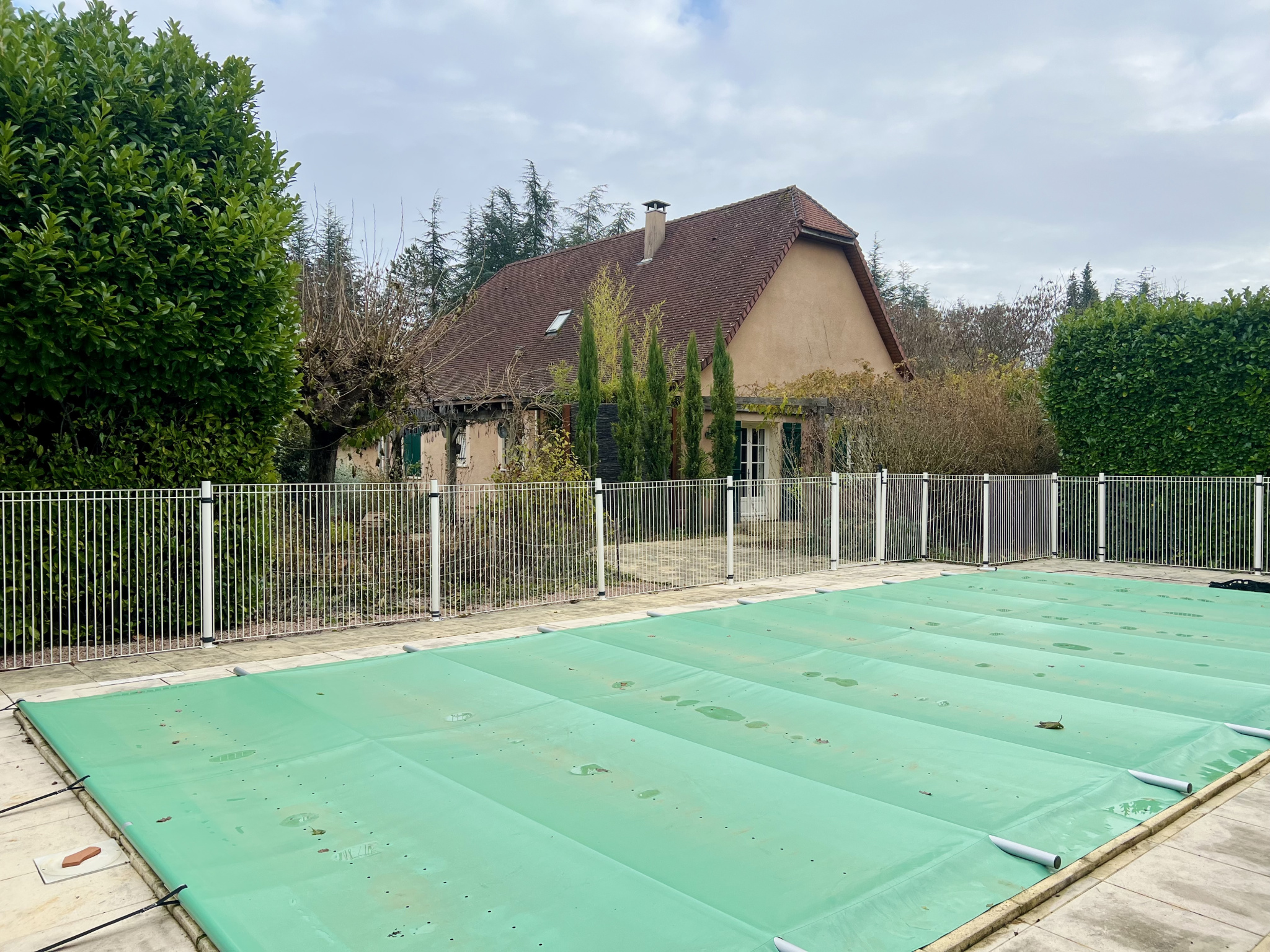 A seulement 10 minutes de Figeac, au coeur d'un terrain arboré de 2500 m2, entièrement bordé de haies et sans aucun vis-à-vis, cette propriété offre un environnement naturel et préservé. Le jardin, plat et arboré accueille une piscine au sel de 9x4m, équipée d'un liner neuf et sécurisée par des barrières, créant un espace idéal pour profiter des beaux jours en toute tranquillité. Portail d'entrée motorisé.