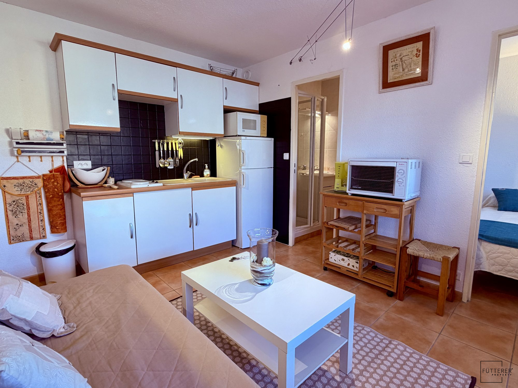 Un appartement 2 pièces de 25,50 m², avec loggia. Au premier étage d'une résidence calme et sécurisée, situé à seulement 150 mètres de la plage et à 600 mètres des commerces. L'appartement se compose de la manière suivante : un séjour avec coin cuisine équipée, une chambre cabine avec placard, une salle d'eau avec WC séparé. Ce logement en très bon état bénéficie de prestations de qualité : Double vitrage avec volets roulants électriques, vue dégagée, Equipé/ Meublé, une place de parking privative!
