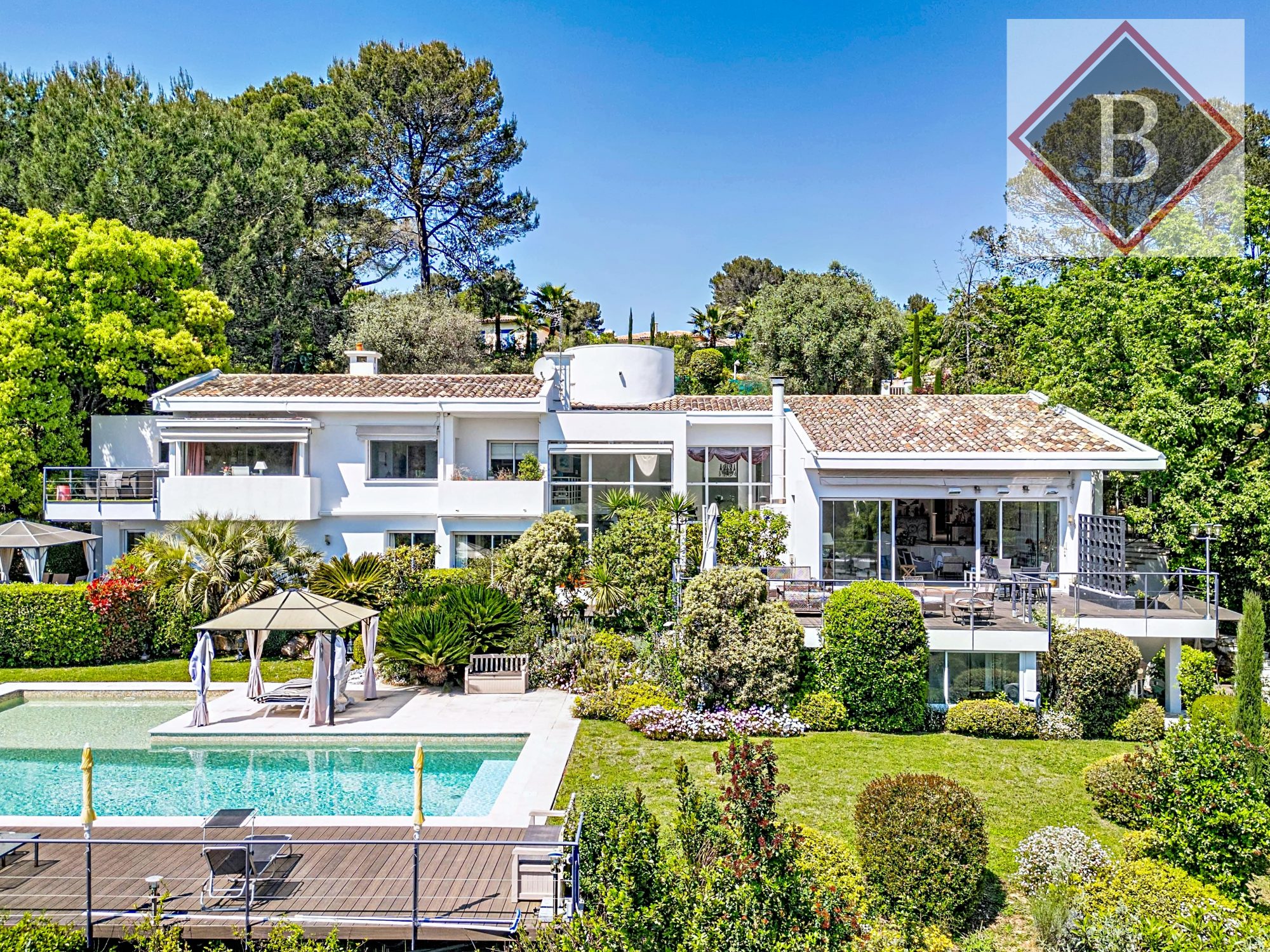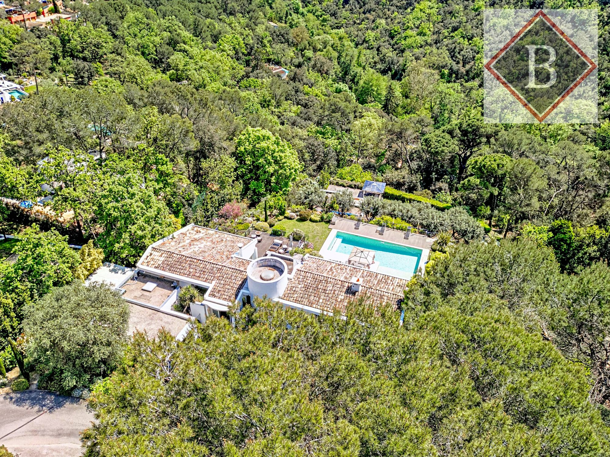 Perchée au coeur d'un domaine privé parmi les plus recherchés de Valbonne, cette villa d'architecte de plus de 500 m² offre un cadre de vie privilégié, ouvert sur la vallée préservée de la Brague et baigné de lumière du matin au soir. La nature y est omniprésente, tout comme la tranquillité, grâce à l'absence totale de vis-à-vis et à un environnement particulièrement calme.