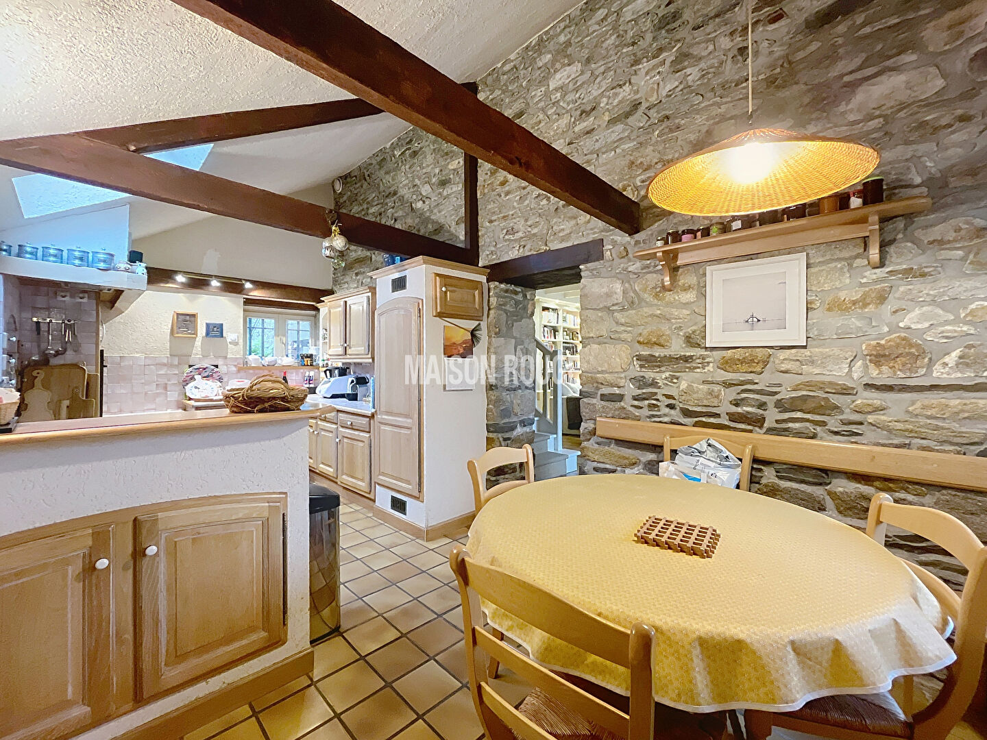 Idéale pour les amoureux de tranquillité et de beaux volumes, elle offre une atmosphère chaleureuse grâce à ses deux cheminées et son jardin arboré sans vis-à-vis.