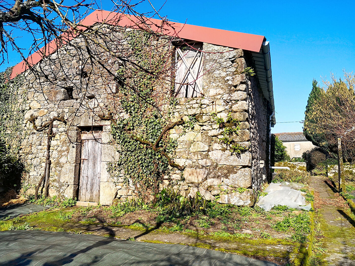 Dépendance 1 composée d'une grange, d'une écurie, une cave avec cheminée ancienne, et d'une pièce pour le bois. De l'autre coté, (Dépendance 2) une petite maison à restaurer, composée de deux pièces, avec cheminée et d'un grenier, un garage et une ancienne étable.