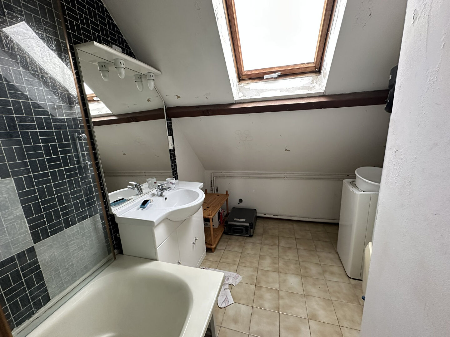 A l'étage, une pièce transformée en kitchenette, deux chambres, une salle de bains et un wc.