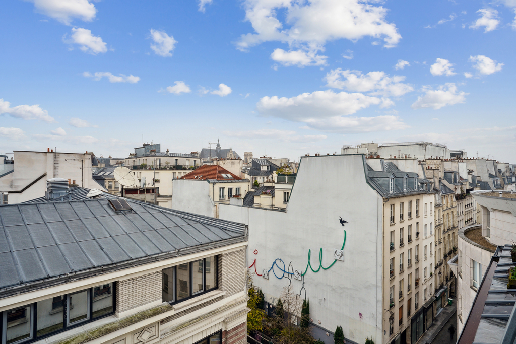 Baigné de lumière grâce à son exposition plein sud, ce bien rare offre une vue imprenable sur les toits de Paris, l'église Saint-Eustache ainsi que sur plusieurs monuments emblématiques de la capitale, conférant à l'ensemble un charme des plus singuliers. Il comprend une entrée, un séjour avec cuisine ouverte, une chambre dotée de rangements sur mesure, une salle d'eau avec WC.