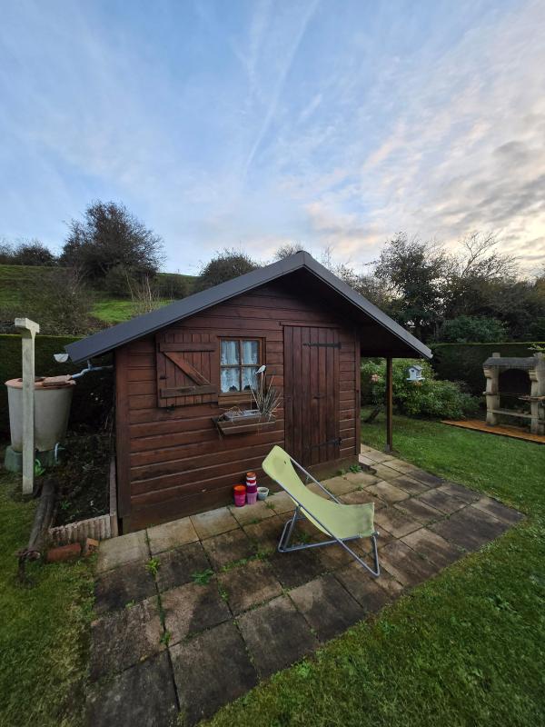 Un salon/salle à manger chaleureux, agrémenté d'une cheminée à bois, idéal pour vos soirées cocooning