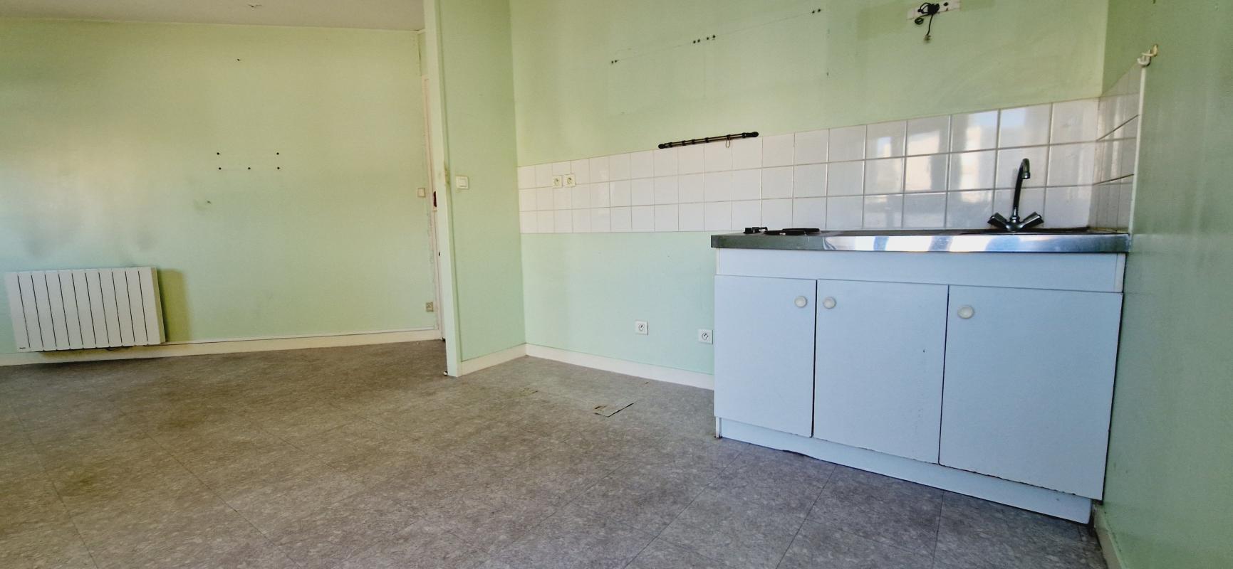 Il offre une entrée avec un grand placard, un séjour lumineux avec cuisine ouverte et une salle d'eau avec WC.