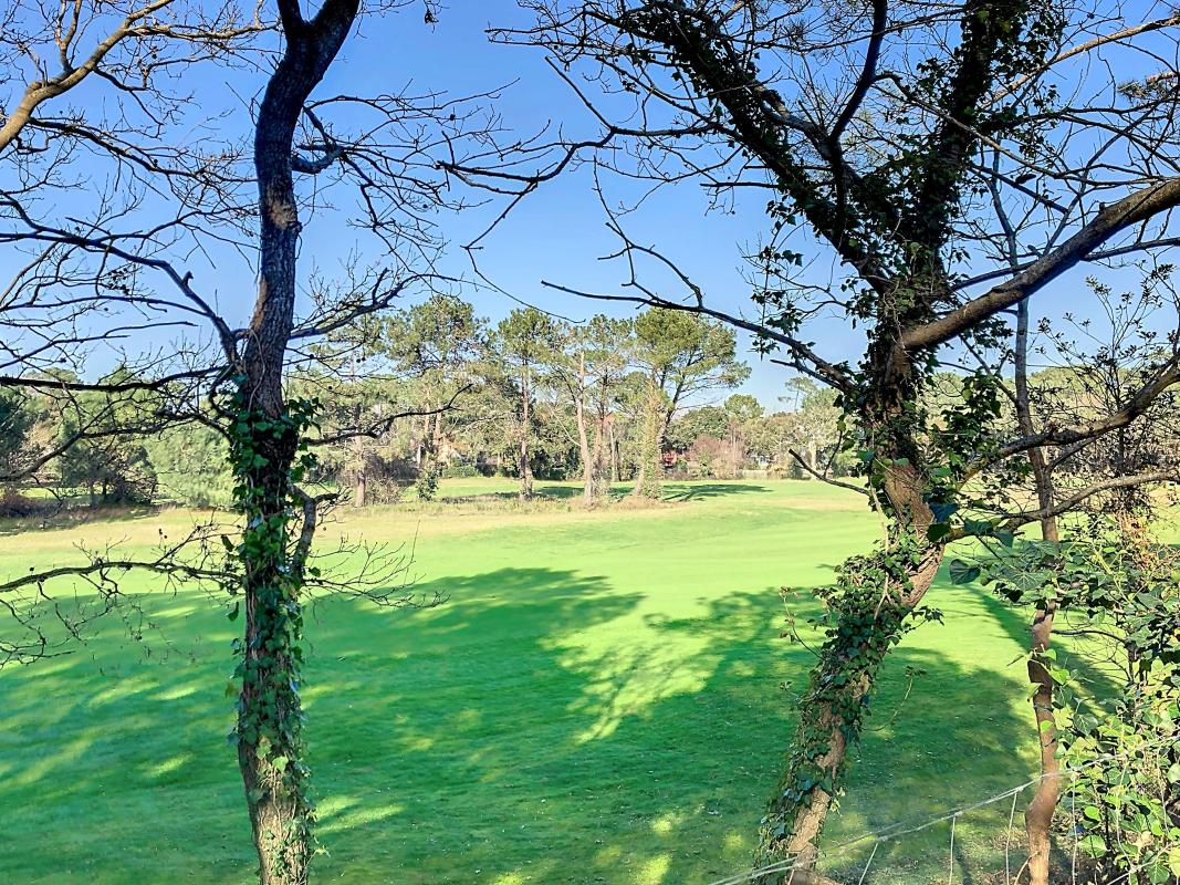 Au rez-de-chaussée, l'entrée s'ouvre sur un placard pratique, des toilettes indépendants avec lave-mains, puis un salon lumineux avec cuisine ouverte aménagée et équipée, dans un esprit convivial. À l'étage, un palier distribue deux belles chambres, dont une avec balcon offrant une vue imprenable sur le golf, ainsi qu'une salle d'eau avec WC.